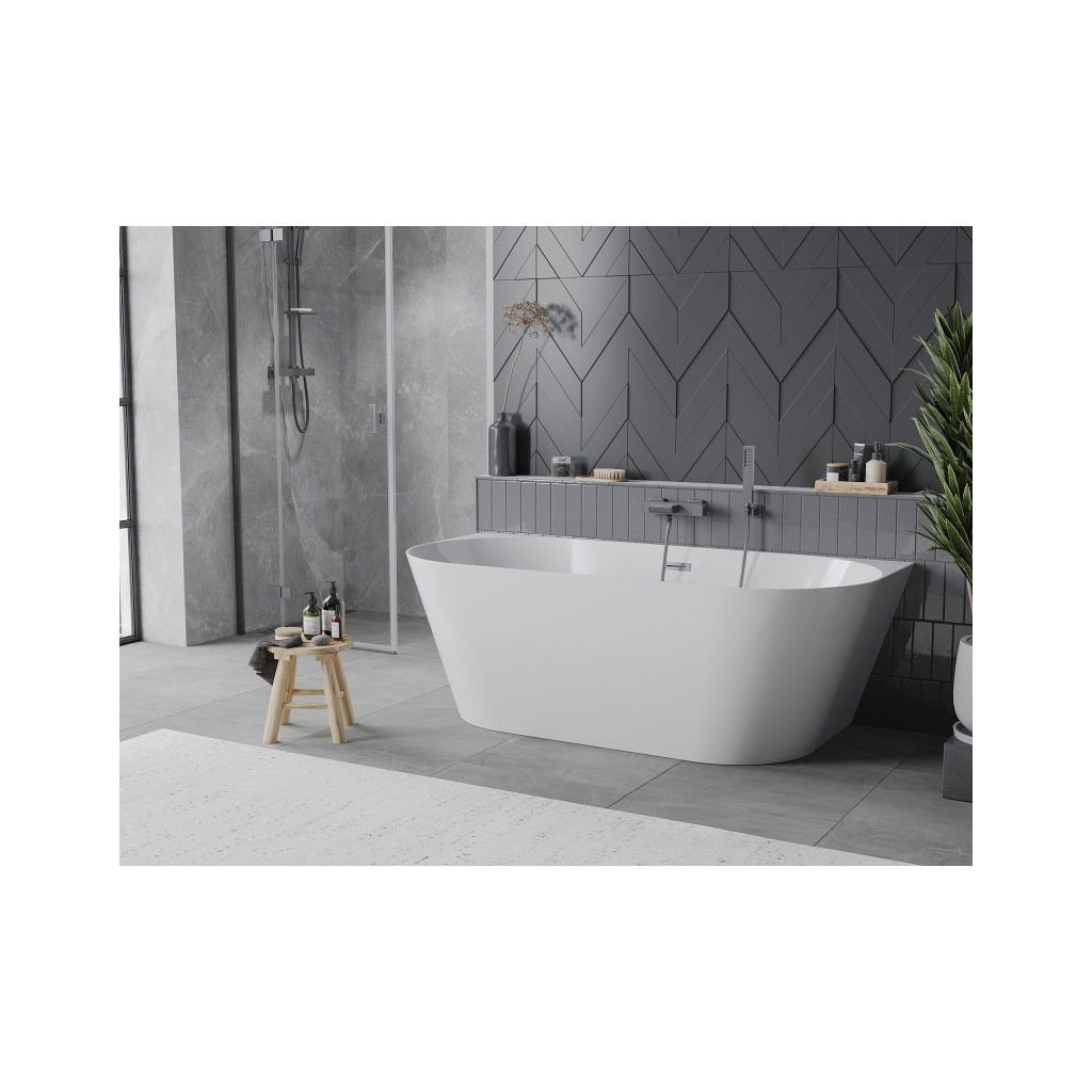 Mexen Oval Slim, voľne stojaca vaňa ku stene 170 x 80 cm, biela lesklá, grafitová prepad, 52661708000-66