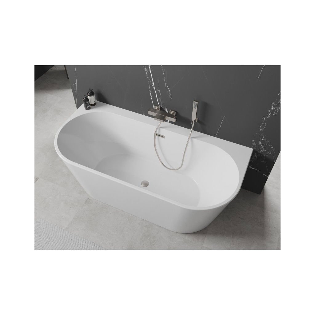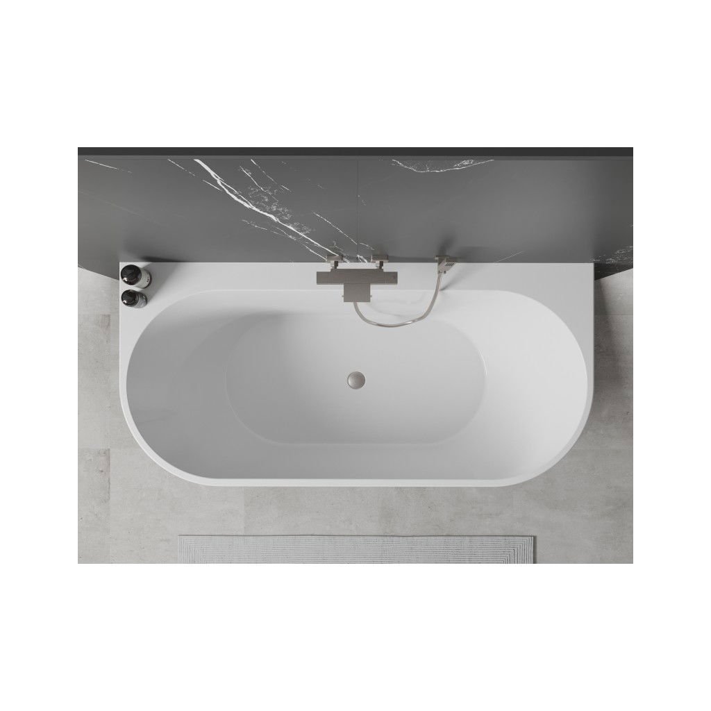 Mexen Oval+, voľne stojaca vaňa ku stene 170 x 80 cm, biela lesklá, brúsená oceľ, 52681708000-97