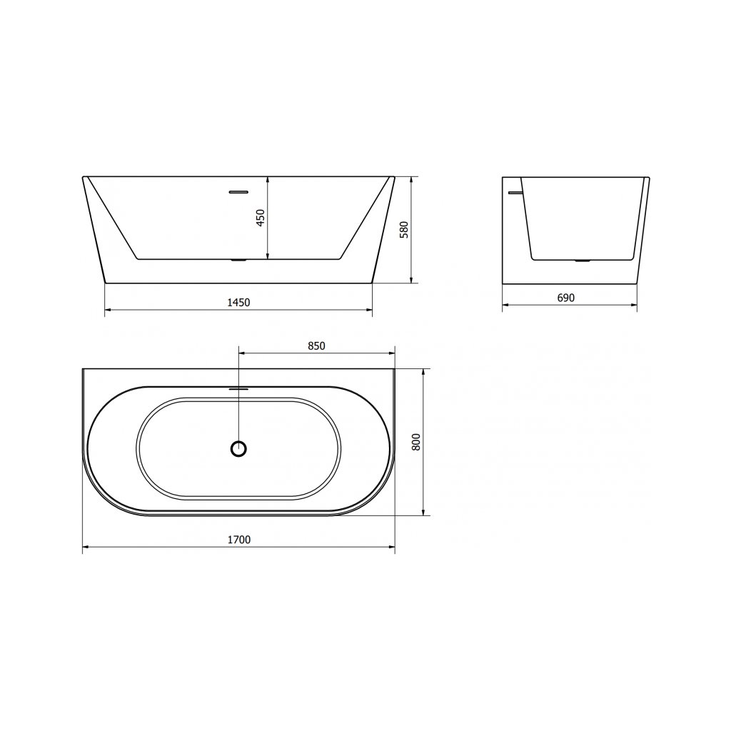 Mexen Oval+, voľne stojaca vaňa ku stene 170 x 80 cm, biela lesklá, čierna matná, 52681708000-70