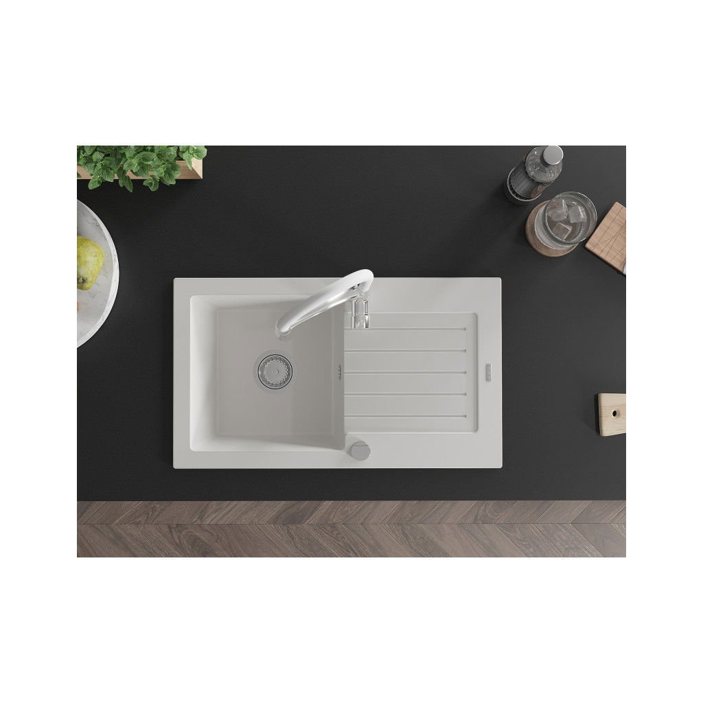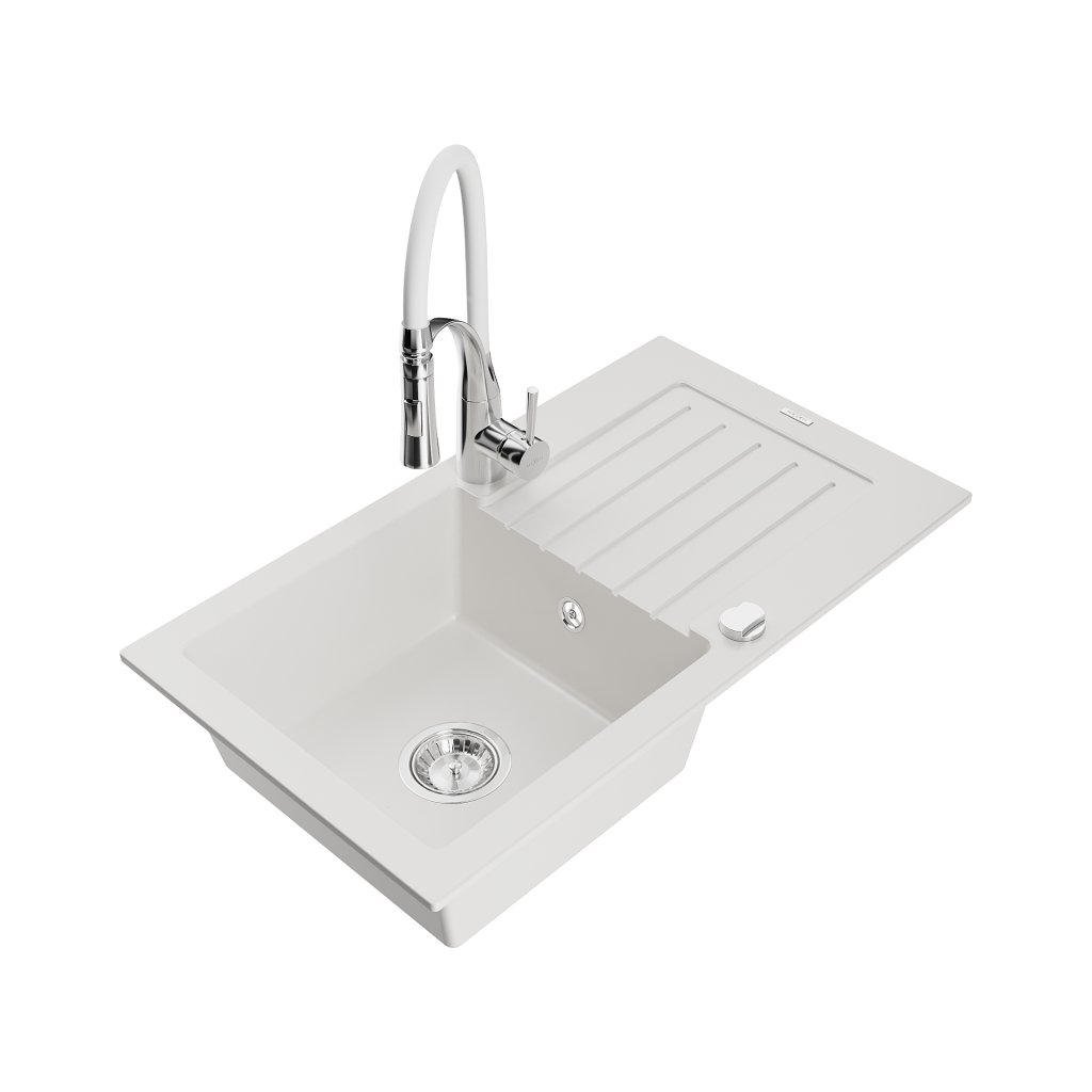 Mexen Pablo, 1-komorový granitový drez 752x436x161 mm a drezová batéria Aster, biela, 6510-20-73450-02