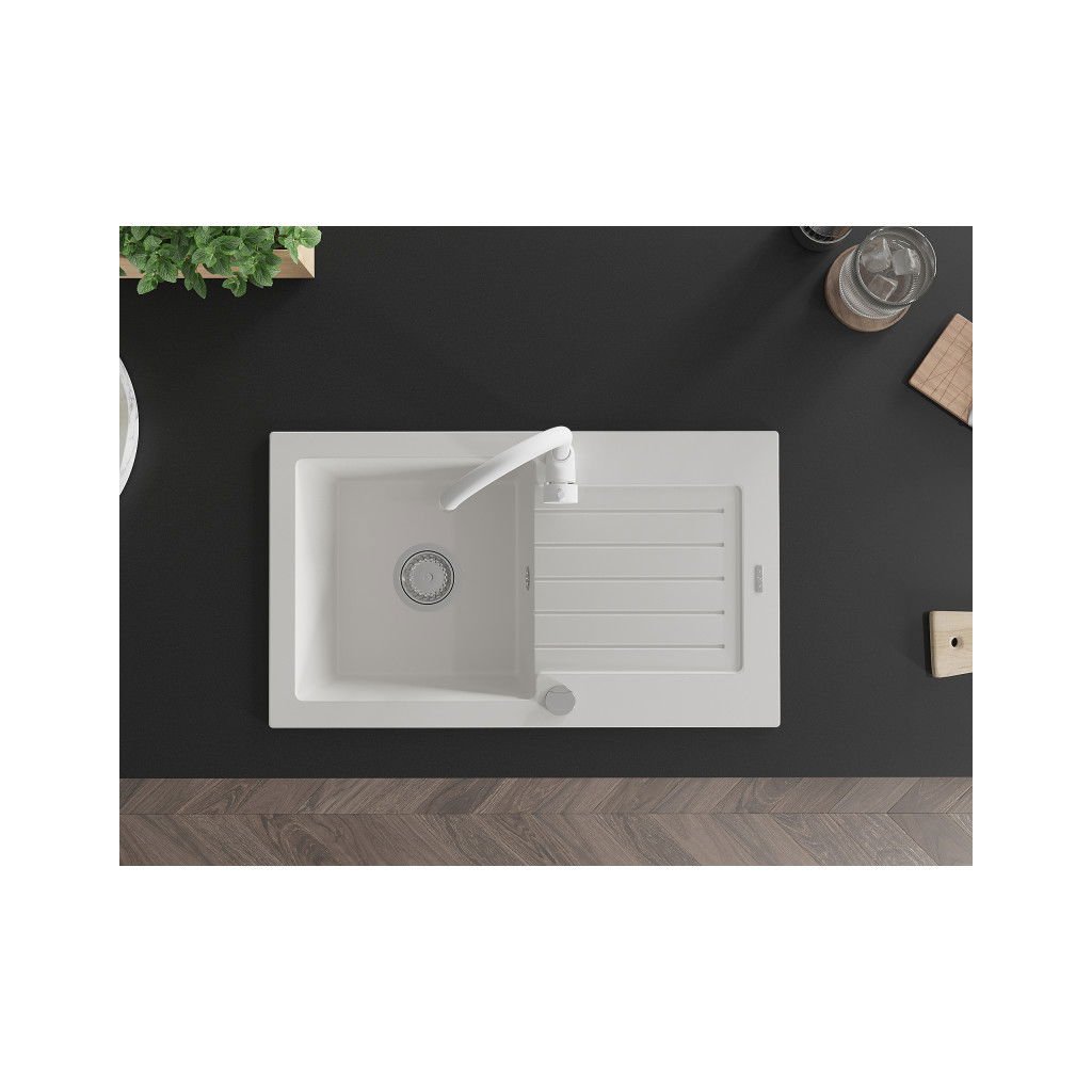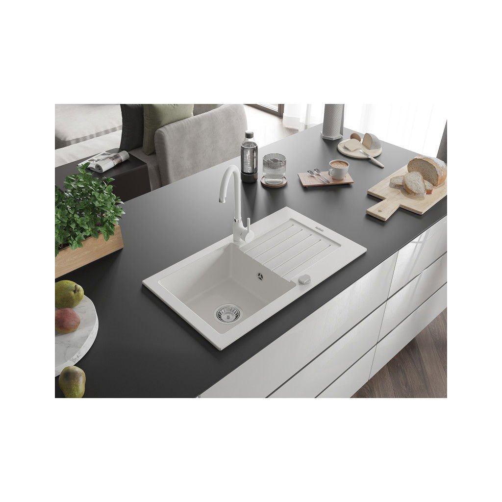 Mexen Pablo, 1-komorový granitový drez s odkvapkávačom 75x44 cm a kuchynskou batériou Telma, biela, 6510-20-670200-20