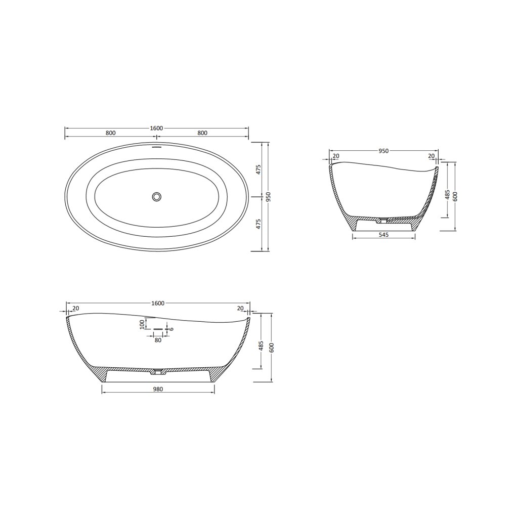 Mexen Parma, voľne stojaca vaňa z konglomerátu 160 x 95 cm, čierna matná, 57231609570