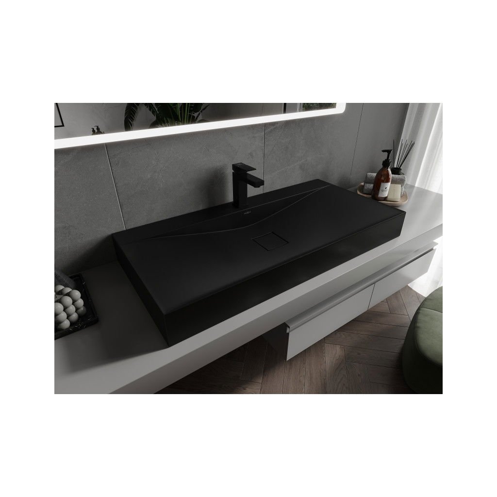 Mexen Poli, umývadlo na dosku z konglomerátu 1/O 100 x 48 cm, čierna matná, 23021071