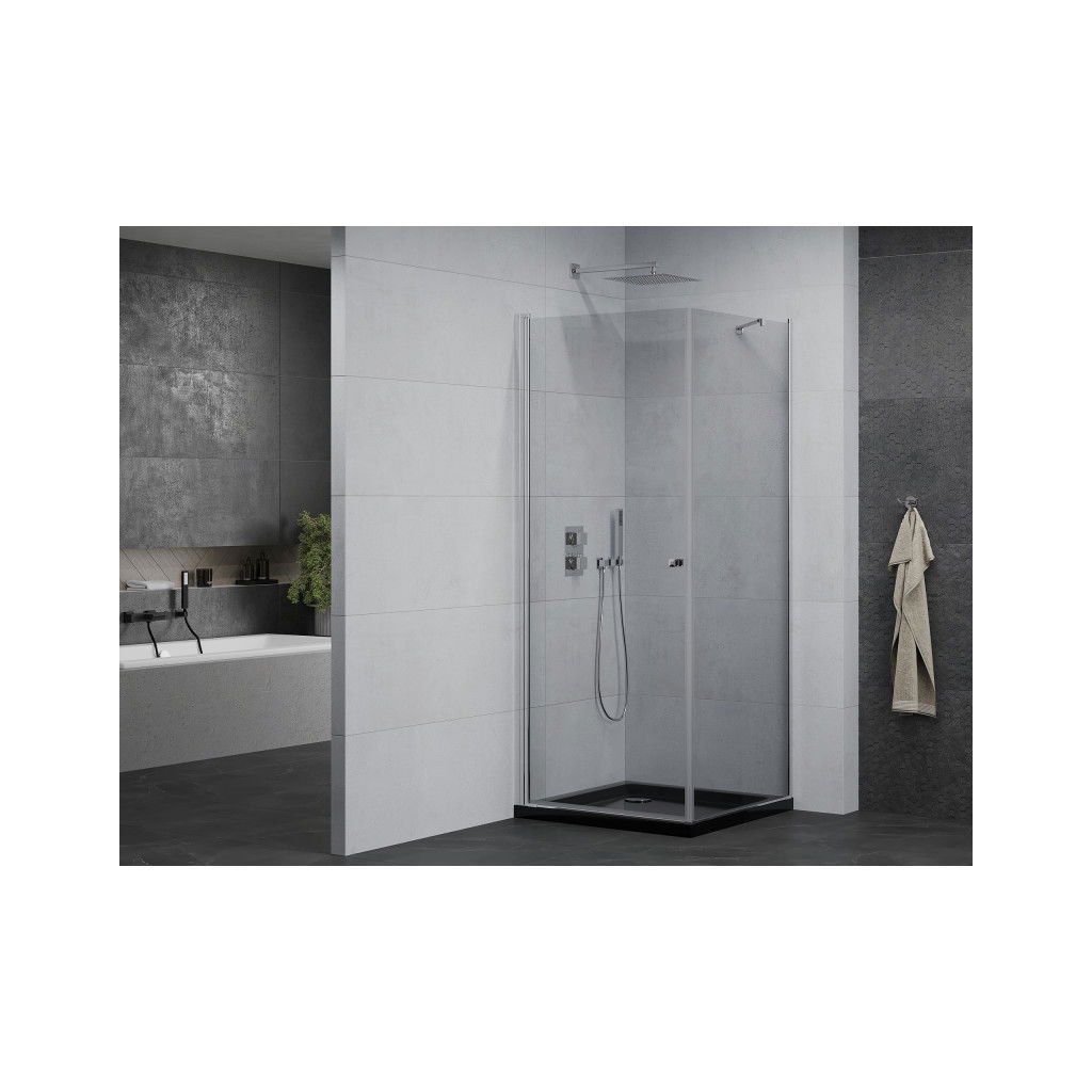 Elegantný sprchovací kút je vyrobený zo 6 mm hrubého tvrdeného skla v prechode procedúry. Aplikovaná povrchová úprava skla zaisťuje maximálny komfort všetkým užívateľom. Táto technológia zaručuje jedinečné vlastnosti, aby sa zabránilo kontaminácii skla - povrch stačí len opláchnuť vodou. Kút je osadený v chrómových hliníkových profiloch a je vybavený tesnením, ktoré zabraňuje úniku vody mimo sprchy kút. Dvere sprchovacieho kúta sú krídlové s možnosťou otvárania dovnútra alebo von (nutné zvoliť pri montáži). Na otváranie slúži decentné kovová rukoväť. Dokonalú stabilitu sprchovacieho kúta zaisťuje kotviace rameno, ktoré je súčasťou produktu. Sprchovací kút je univerzálny - pri inštalácii sa rozhodnete otvoriť vpravo alebo doľava. Profilové lišty umožňujú reguláciu pre vyrovnanie prípadných drobných nerovností stien. Sprchovací kút je možné inštalovať na sprchovú vaničku alebo priamo na dlažbu.