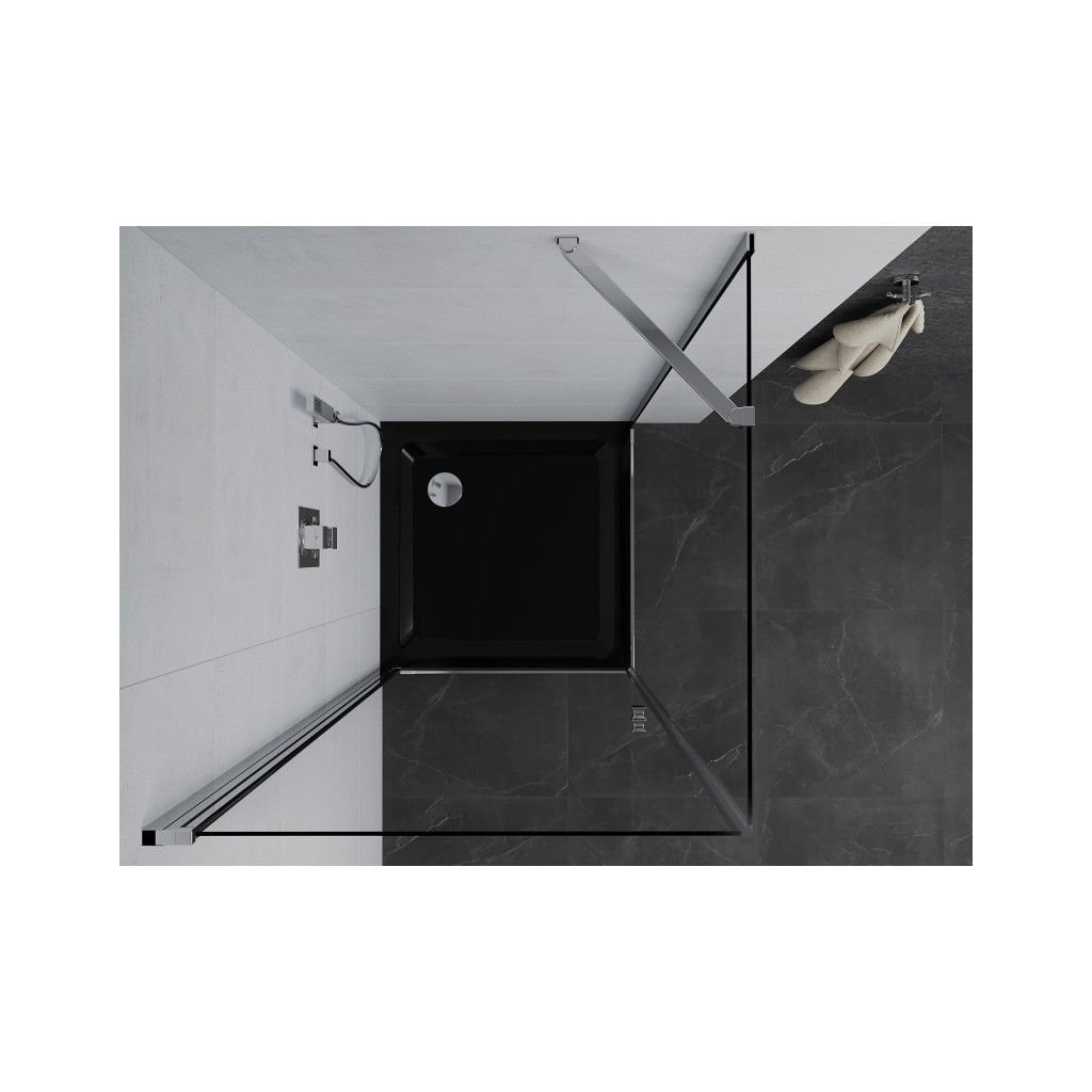 Mexen Pretoria, sprchovací kút 100 (dvere) x 100 (stena) cm, 6mm číre sklo, chrómový profil + čierna sprchová vanička, 852-100-100-01-00-4070