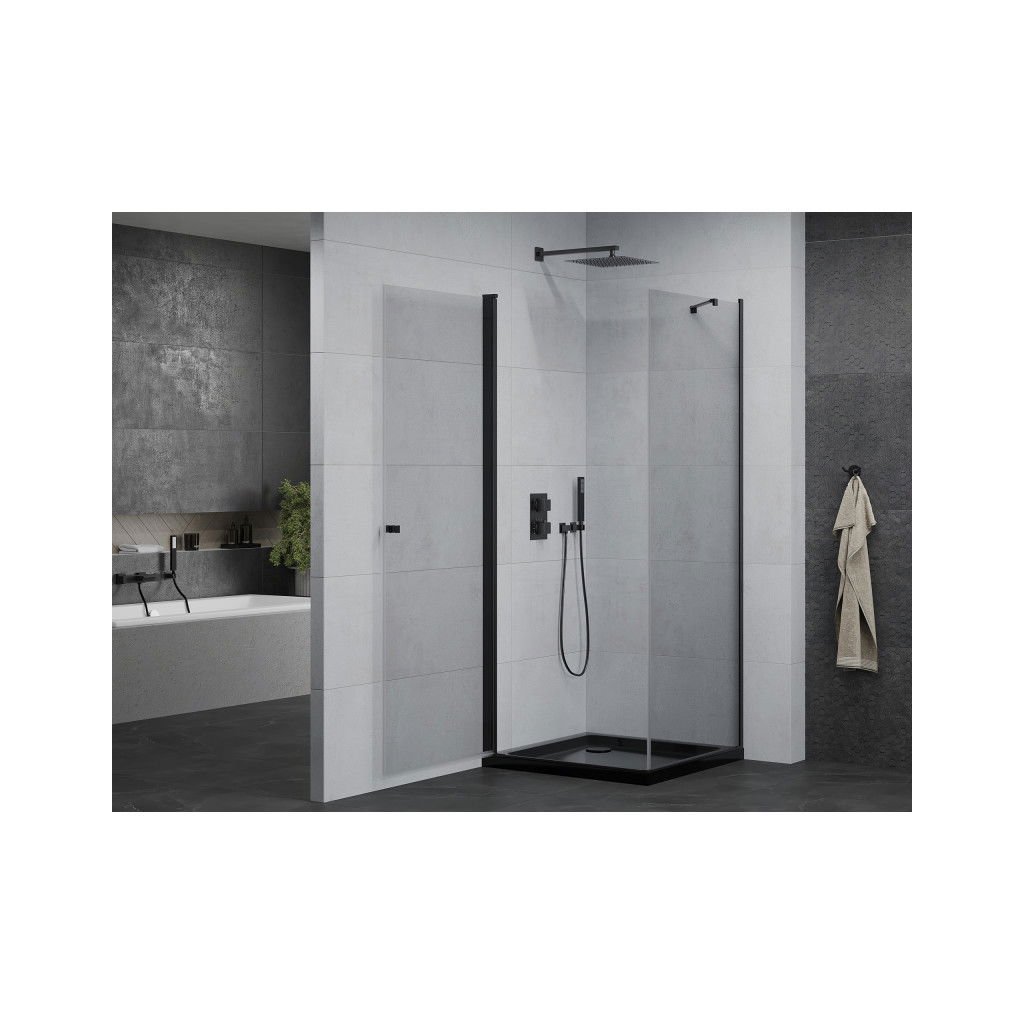 Elegantný sprchovací kút je vyrobený zo 6 mm hrubého tvrdeného skla v prechode procedúry. Aplikovaná povrchová úprava skla zaisťuje maximálny komfort všetkým užívateľom. Táto technológia zaručuje jedinečné vlastnosti, aby sa zabránilo kontaminácii skla - povrch stačí len opláchnuť vodou. Kút je osadený v čiernych hliníkových profiloch a je vybavený tesnením, ktoré zabraňuje úniku vody mimo sprchy kút. Dvere sprchovacieho kúta sú krídlové s možnosťou otvárania dovnútra alebo von (nutné zvoliť pri montáži). Na otváranie slúži decentné kovová rukoväť. Dokonalú stabilitu sprchovacieho kúta zaisťuje kotviace rameno, ktoré je súčasťou produktu. Sprchovací kút je univerzálny - pri inštalácii sa rozhodnete otvoriť vpravo alebo doľava. Profilové lišty umožňujú reguláciu pre vyrovnanie prípadných drobných nerovností stien. Sprchovací kút je možné inštalovať na sprchovú vaničku alebo priamo na dlažbu.