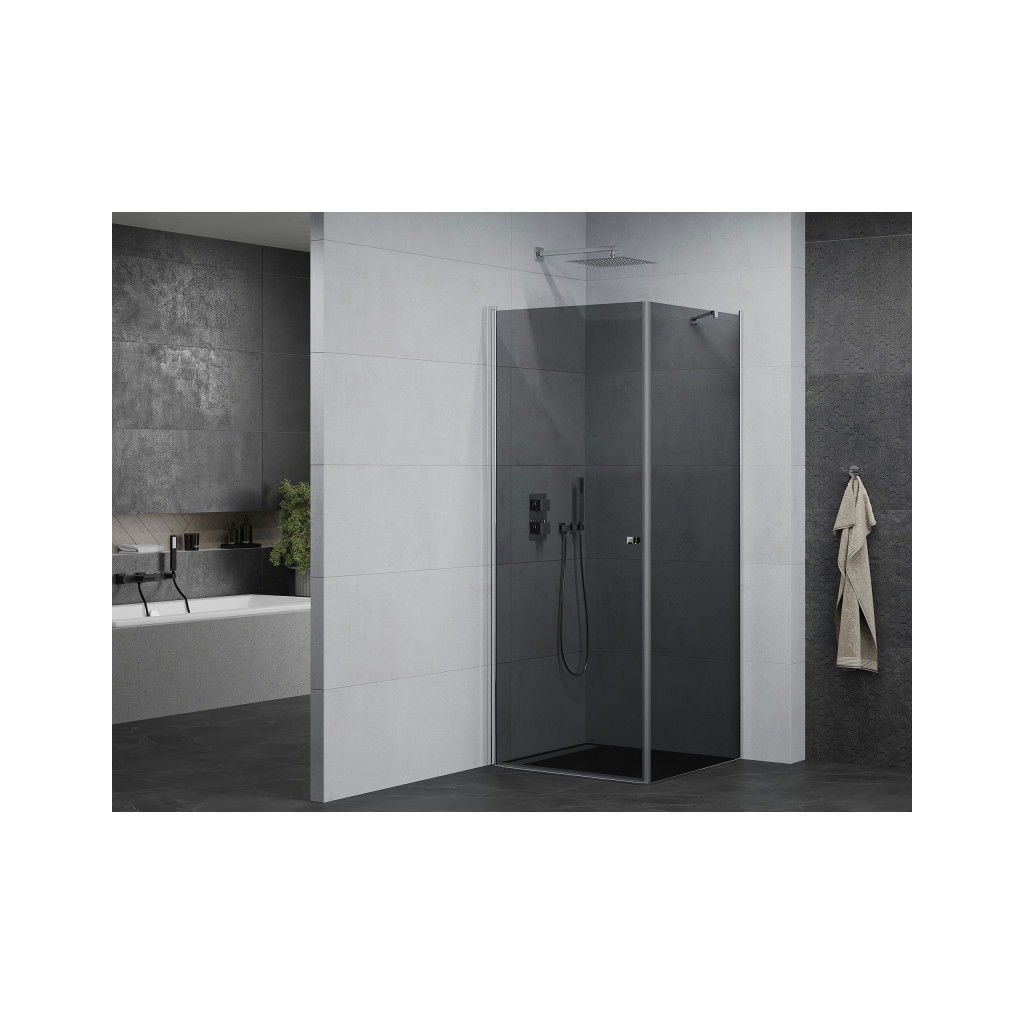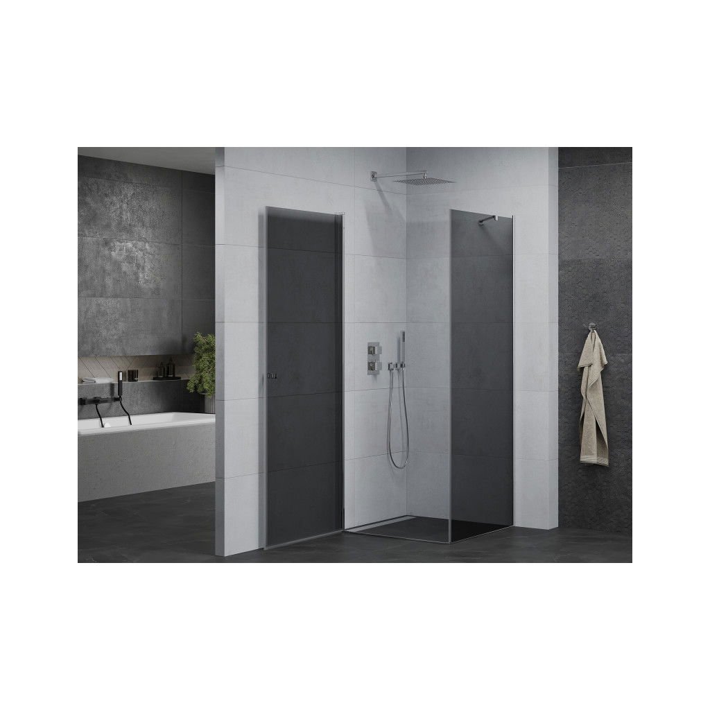 Skvelá voľba do každej kúpeľne. Elegantný sprchovací kút je vyrobený zo 6 mm hrubého tvrdeného šedého skla v prechode procedúry. Aplikovaná povrchová úprava skla zaisťuje maximálny komfort všetkým užívateľom. Táto technológia zaručuje jedinečné vlastnosti, aby sa zabránilo kontaminácii skla - povrch je len opláchnutý vodou. Kút je osadený v chrómových hliníkových profiloch a je vybavený tesnením, ktoré zabraňuje úniku vody mimo sprchy kút. Dvere sprchovacieho kúta sú krídlové s možnosťou otvárania dovnútra alebo von (nutné zvoliť pri montáži). Na otváranie slúži decentné kovová rukoväť. Dokonalú stabilitu sprchovacieho kúta zaisťuje kotviace rameno, ktoré je súčasťou produktu.