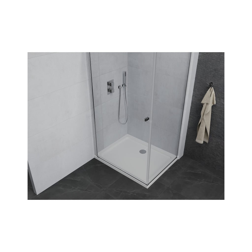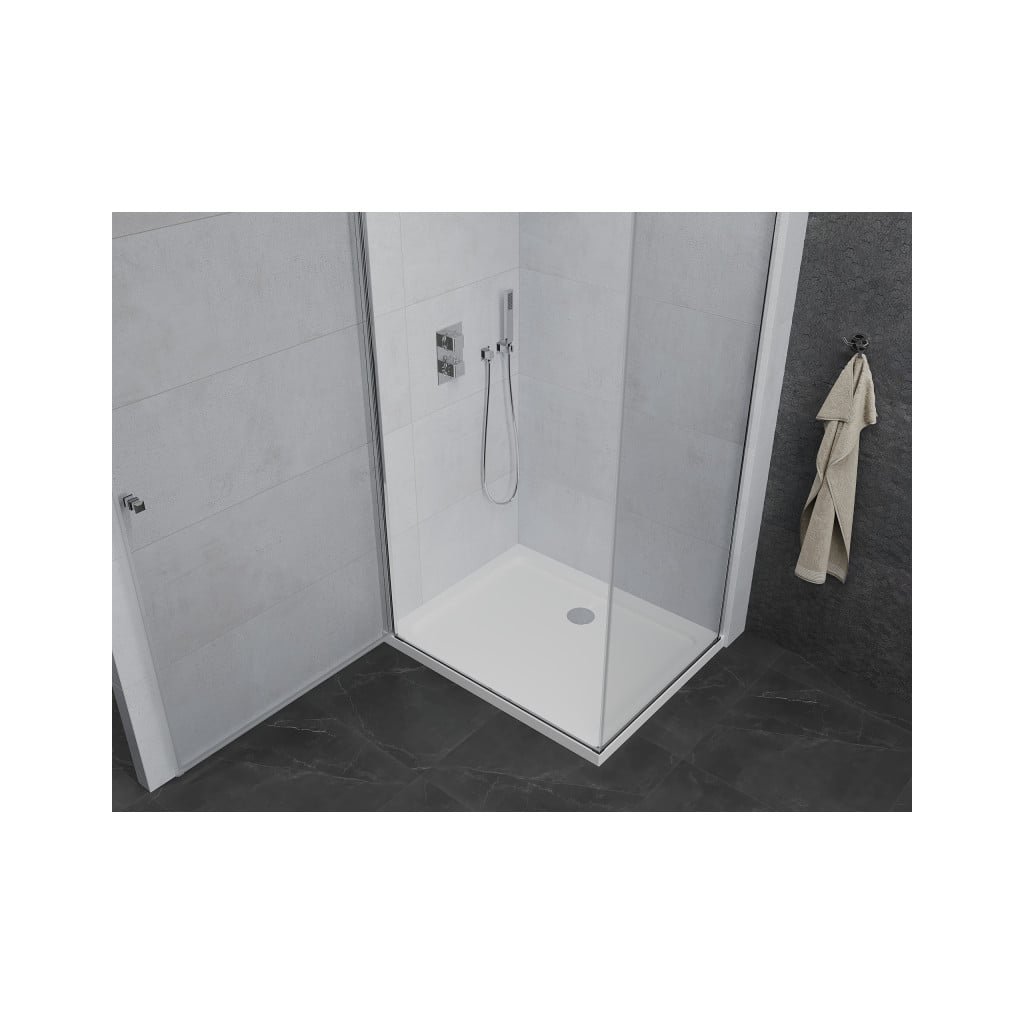 Elegantný sprchovací kút je vyrobený zo 6 mm hrubého tvrdeného skla v prechode procedúry. Aplikovaná povrchová úprava skla zaisťuje maximálny komfort všetkým užívateľom. Táto technológia zaručuje jedinečné vlastnosti, aby sa zabránilo kontaminácii skla - povrch stačí len opláchnuť vodou. Kút je osadený v chrómových hliníkových profiloch a je vybavený tesnením, ktoré zabraňuje úniku vody mimo sprchy kút. Dvere sprchovacieho kúta sú krídlové s možnosťou otvárania dovnútra alebo von (nutné zvoliť pri montáži). Na otváranie slúži decentné kovová rukoväť. Dokonalú stabilitu sprchovacieho kúta zaisťuje kotviace rameno, ktoré je súčasťou produktu. Sprchovací kút je univerzálny - pri inštalácii sa rozhodnete otvoriť vpravo alebo doľava. Profilové lišty umožňujú reguláciu pre vyrovnanie prípadných drobných nerovností stien. Sprchovací kút je možné inštalovať na sprchovú vaničku alebo priamo na dlažbu.