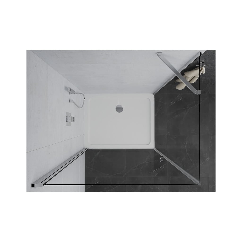 Mexen Pretoria, sprchovací kút 70 (dvere) x 120 (stena) cm, 6mm číre sklo, chrómový profil + biela sprchová vanička, 852-070-120-01-00-4010