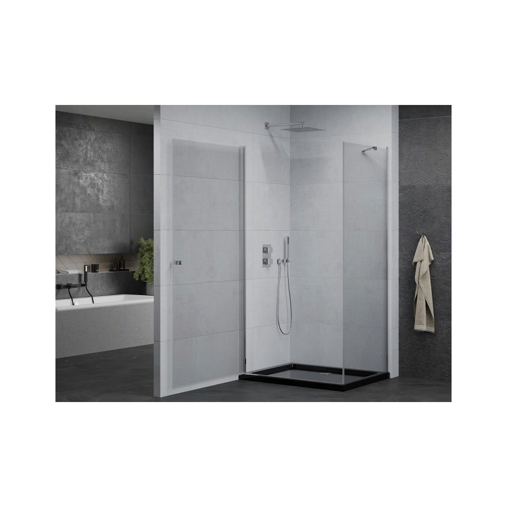 Elegantný sprchovací kút je vyrobený zo 6 mm hrubého tvrdeného skla v prechode procedúry. Aplikovaná povrchová úprava skla zaisťuje maximálny komfort všetkým užívateľom. Táto technológia zaručuje jedinečné vlastnosti, aby sa zabránilo kontaminácii skla - povrch stačí len opláchnuť vodou. Kút je osadený v chrómových hliníkových profiloch a je vybavený tesnením, ktoré zabraňuje úniku vody mimo sprchy kút. Dvere sprchovacieho kúta sú krídlové s možnosťou otvárania dovnútra alebo von (nutné zvoliť pri montáži). Na otváranie slúži decentné kovová rukoväť. Dokonalú stabilitu sprchovacieho kúta zaisťuje kotviace rameno, ktoré je súčasťou produktu. Sprchovací kút je univerzálny - pri inštalácii sa rozhodnete otvoriť vpravo alebo doľava. Profilové lišty umožňujú reguláciu pre vyrovnanie prípadných drobných nerovností stien. Sprchovací kút je možné inštalovať na sprchovú vaničku alebo priamo na dlažbu.