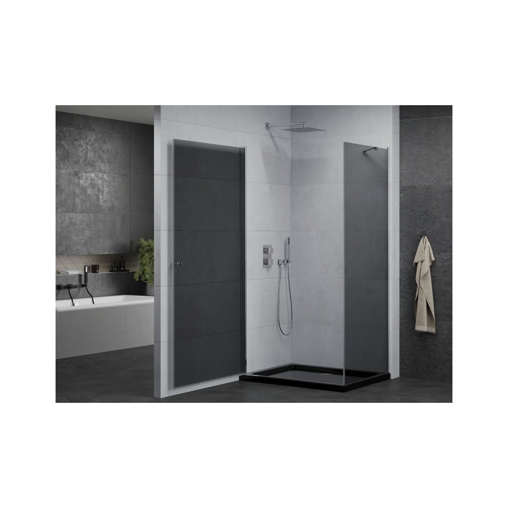 Elegantný sprchovací kút je vyrobený zo 6 mm hrubého tvrdeného šedého skla v prechode procedúry. Aplikovaná povrchová úprava skla zaisťuje maximálny komfort všetkým užívateľom. Táto technológia zaručuje jedinečné vlastnosti, aby sa zabránilo kontaminácii skla - povrch stačí len opláchnuť vodou. Kút je osadený v chrómových hliníkových profiloch a je vybavený tesnením, ktoré zabraňuje úniku vody mimo sprchy kút. Dvere sprchovacieho kúta sú krídlové s možnosťou otvárania dovnútra alebo von (nutné zvoliť pri montáži). Na otváranie slúži decentné kovová rukoväť. Dokonalú stabilitu sprchovacieho kúta zaisťuje kotviace rameno, ktoré je súčasťou produktu. Sprchovací kút je univerzálny - pri inštalácii sa rozhodnete otvoriť vpravo alebo doľava. Profilové lišty umožňujú reguláciu pre vyrovnanie prípadných drobných nerovností stien. Sprchovací kút je možné inštalovať na sprchovú vaničku alebo priamo na dlažbu.