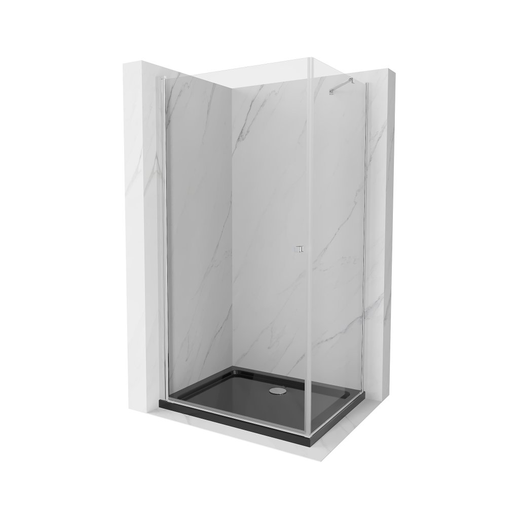 Mexen Pretoria, sprchovací kút 80 (dvere) x 110 (stena) cm, 6mm číre sklo, chrómový profil + čierna sprchová vanička, 852-080-110-01-00-4070