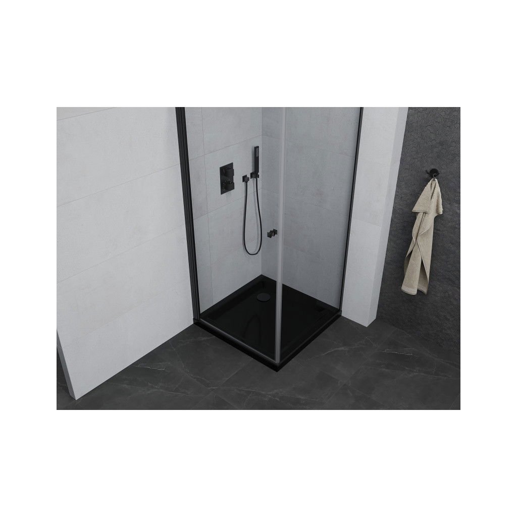 Mexen Pretoria, sprchovací kút 80 (dvere) x 80 (stena) cm, 6mm číre sklo, čierny profil + čierna sprchová vanička, 852-080-080-70-00-4070B