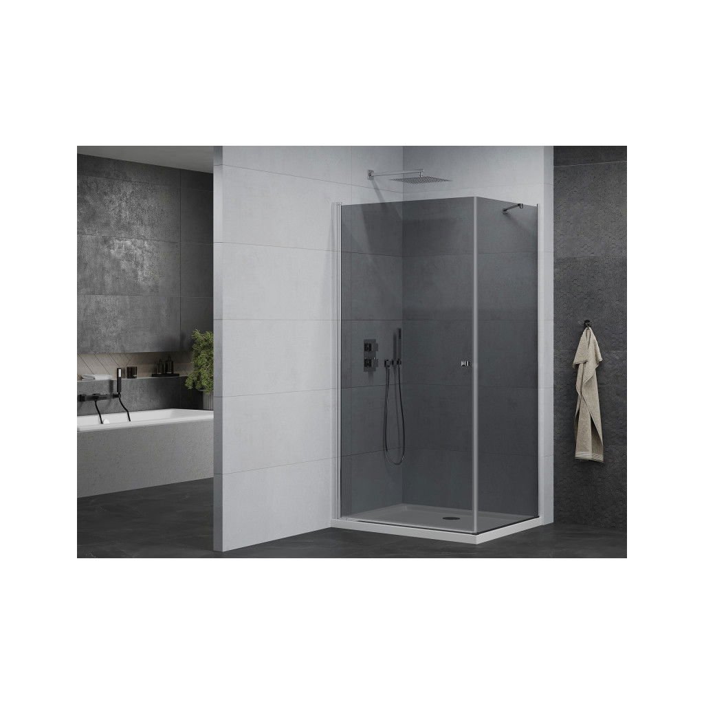 Elegantný sprchovací kút je vyrobený zo 6 mm hrubého tvrdeného šedého skla v prechode procedúry. Aplikovaná povrchová úprava skla zaisťuje maximálny komfort všetkým užívateľom. Táto technológia zaručuje jedinečné vlastnosti, aby sa zabránilo kontaminácii skla - povrch stačí len opláchnuť vodou. Kút je osadený v chrómových hliníkových profiloch a je vybavený tesnením, ktoré zabraňuje úniku vody mimo sprchy kút. Dvere sprchovacieho kúta sú krídlové s možnosťou otvárania dovnútra alebo von (nutné zvoliť pri montáži). Na otváranie slúži decentné kovová rukoväť. Dokonalú stabilitu sprchovacieho kúta zaisťuje kotviace rameno, ktoré je súčasťou produktu. Sprchovací kút je univerzálny - pri inštalácii sa rozhodnete otvoriť vpravo alebo doľava. Profilové lišty umožňujú reguláciu pre vyrovnanie prípadných drobných nerovností stien. Sprchovací kút je možné inštalovať na sprchovú vaničku alebo priamo na dlažbu.