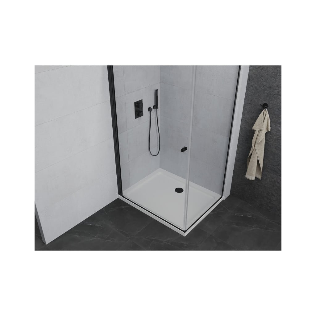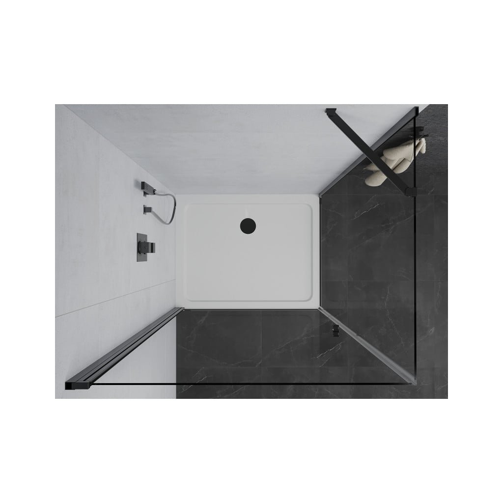 Mexen Pretoria, sprchovací kút 90 (dvere) x 100 (stena) cm, 6mm číre sklo, čierny profil + biela sprchová vanička, 852-090-100-70-00-4010B