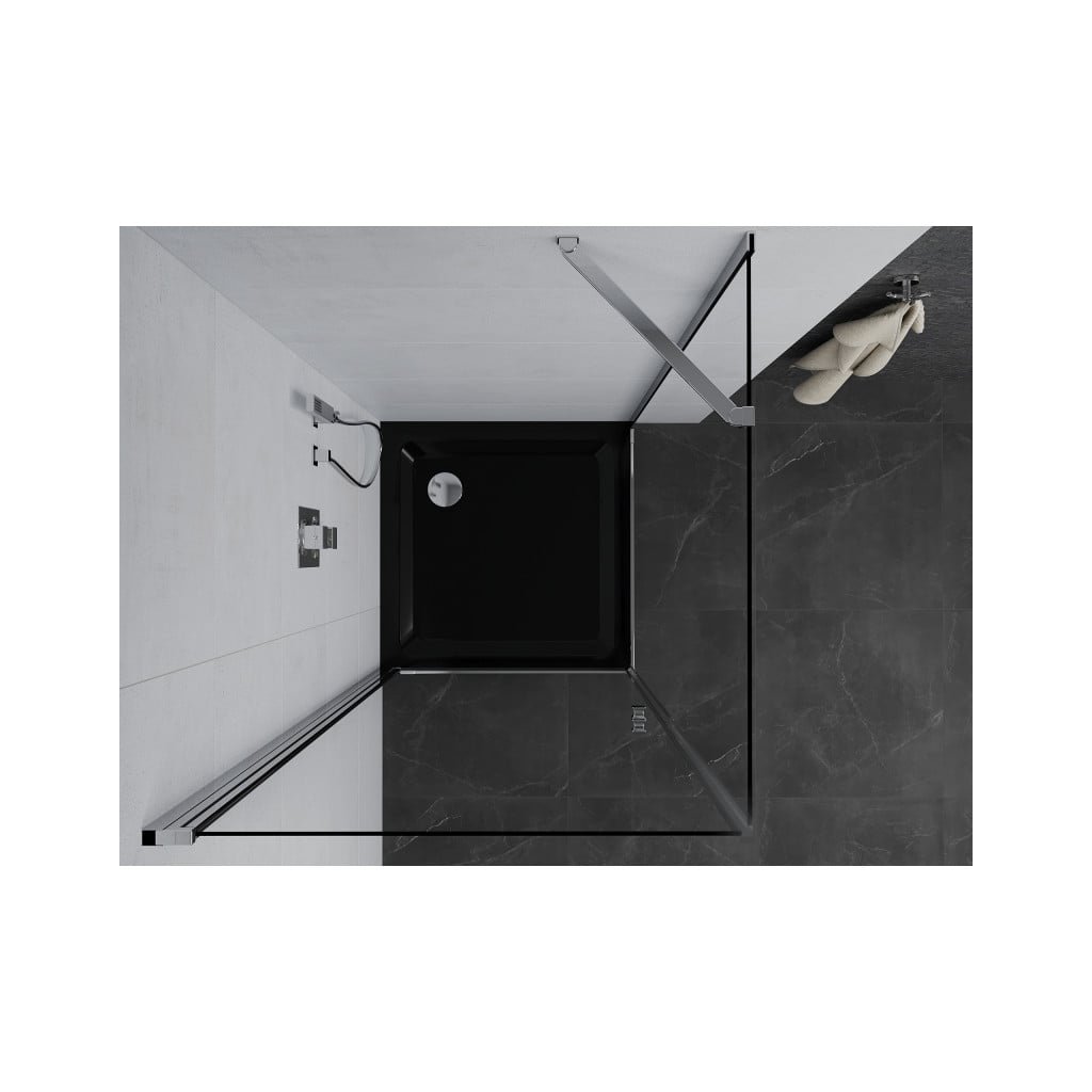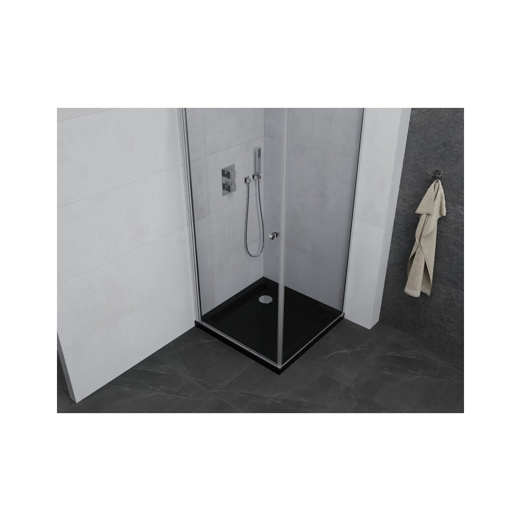 Mexen Pretoria, sprchovací kút 90 (dvere) x 90 (stena) cm, 6mm číre sklo, chrómový profil + čierna sprchová vanička, 852-090-090-01-00-4070
