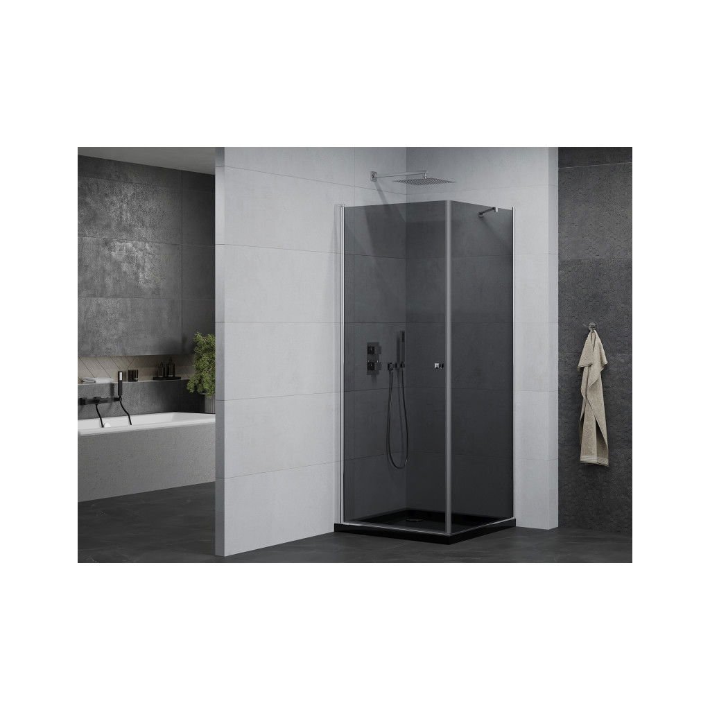 Elegantný sprchovací kút je vyrobený zo 6 mm hrubého tvrdeného šedého skla v prechode procedúry. Aplikovaná povrchová úprava skla zaisťuje maximálny komfort všetkým užívateľom. Táto technológia zaručuje jedinečné vlastnosti, aby sa zabránilo kontaminácii skla - povrch stačí len opláchnuť vodou. Kút je osadený v chrómových hliníkových profiloch a je vybavený tesnením, ktoré zabraňuje úniku vody mimo sprchy kút. Dvere sprchovacieho kúta sú krídlové s možnosťou otvárania dovnútra alebo von (nutné zvoliť pri montáži). Na otváranie slúži decentné kovová rukoväť. Dokonalú stabilitu sprchovacieho kúta zaisťuje kotviace rameno, ktoré je súčasťou produktu. Sprchovací kút je univerzálny - pri inštalácii sa rozhodnete otvoriť vpravo alebo doľava. Profilové lišty umožňujú reguláciu pre vyrovnanie prípadných drobných nerovností stien. Sprchovací kút je možné inštalovať na sprchovú vaničku alebo priamo na dlažbu.