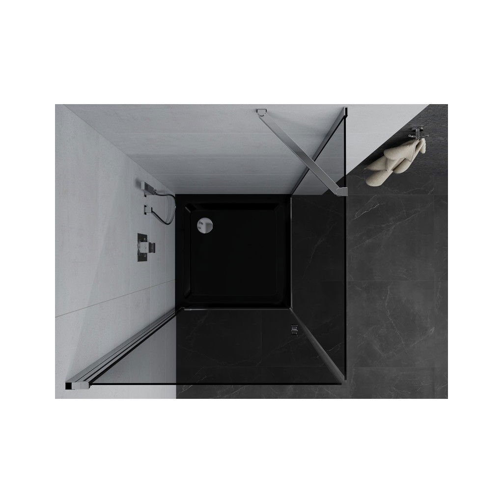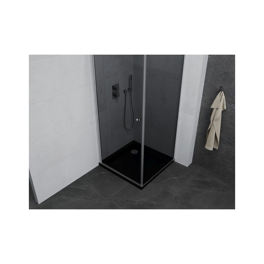 Mexen Pretoria, sprchovací kút 90 (dvere) x 90 (stena) cm, 6mm šedé sklo, chrómový profil + čierna sprchová vanička, 852-090-090-01-40-4070