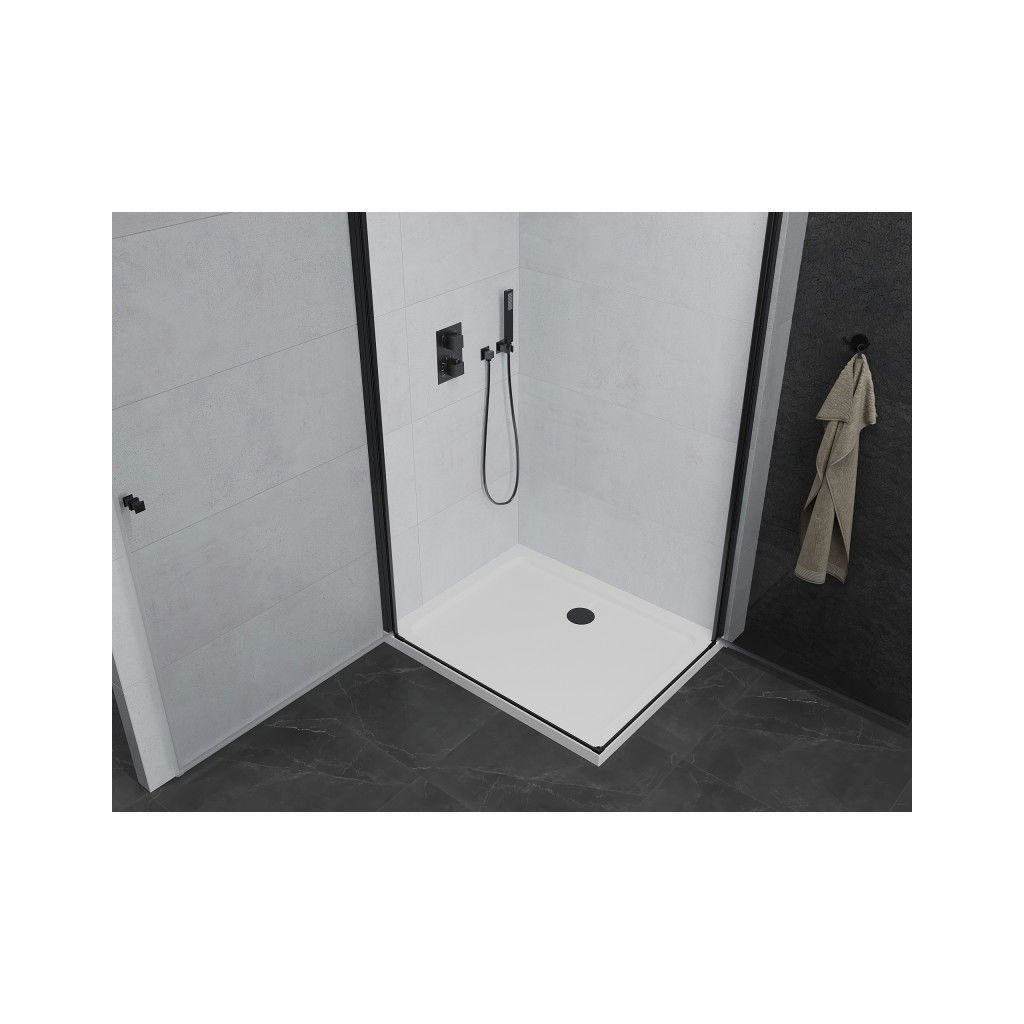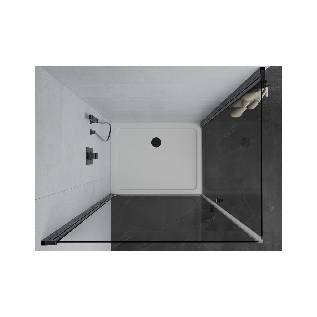 Mexen Pretoria Duo, sprchovací kút s 2-krídlovými dverami 80 (dvere) x 70 (dvere) cm, 6mm číre sklo, čierny profil + slim sprchová vanička 5cm biela s čiernym sifónom, 852-080-070-70-02-4010B