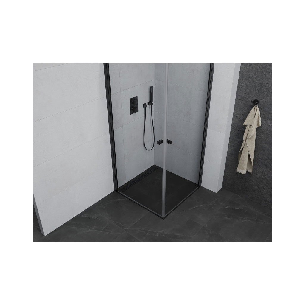 Mexen Pretoria Duo, sprchovací kút s 2-krídlovými dverami 80 (dvere) x 80 (dvere) cm, 6mm číre sklo, čierny profil, 852-080-080-70-00-02