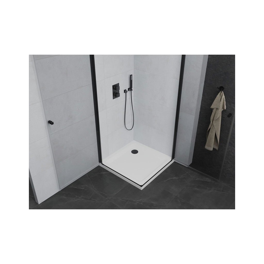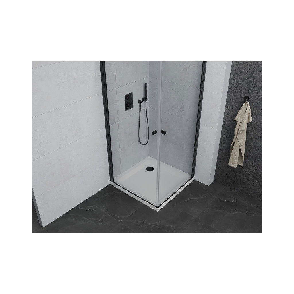 Mexen Pretoria Duo, sprchovací kút s 2-krídlovými dverami 80 (dvere) x 80 (dvere) cm, 6mm číre sklo, čierny profil + slim sprchová vanička 5cm biela s čiernym sifónom, 852-080-080-70-02-4010B