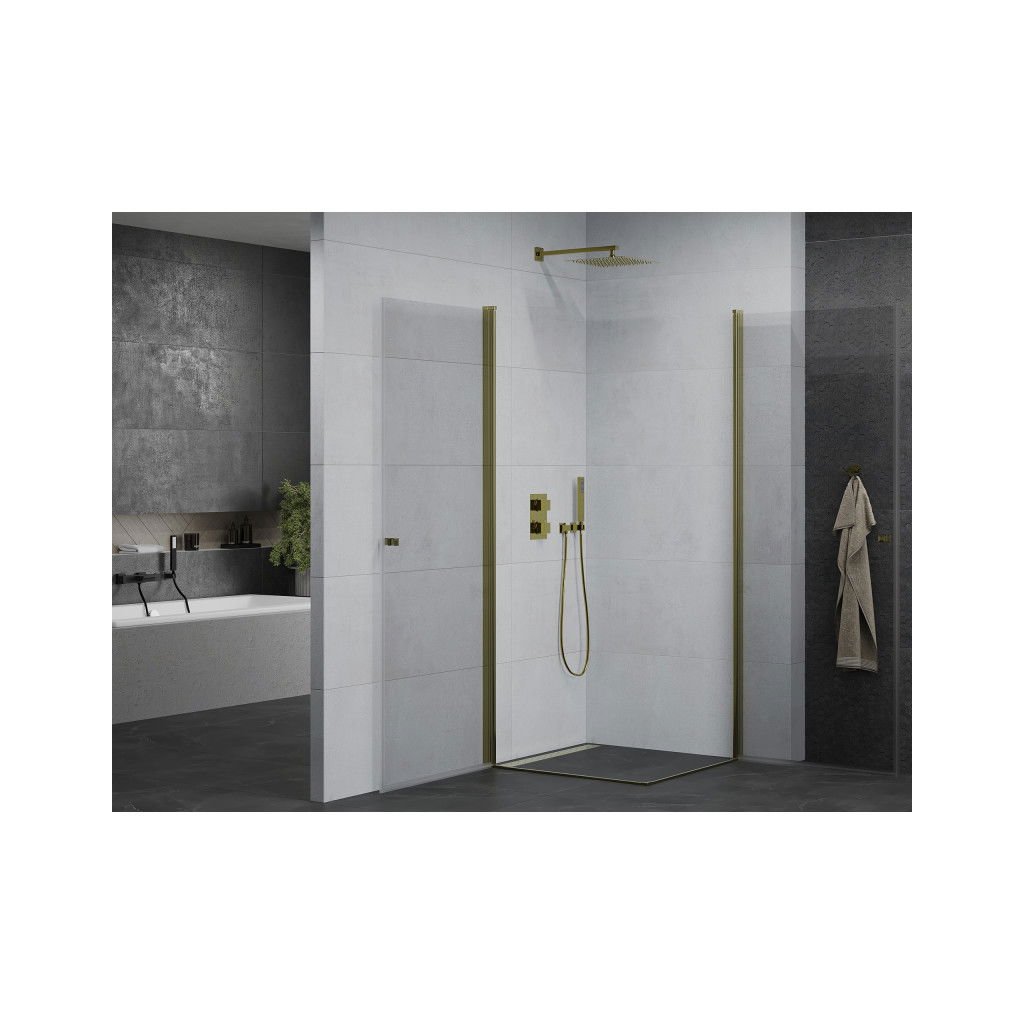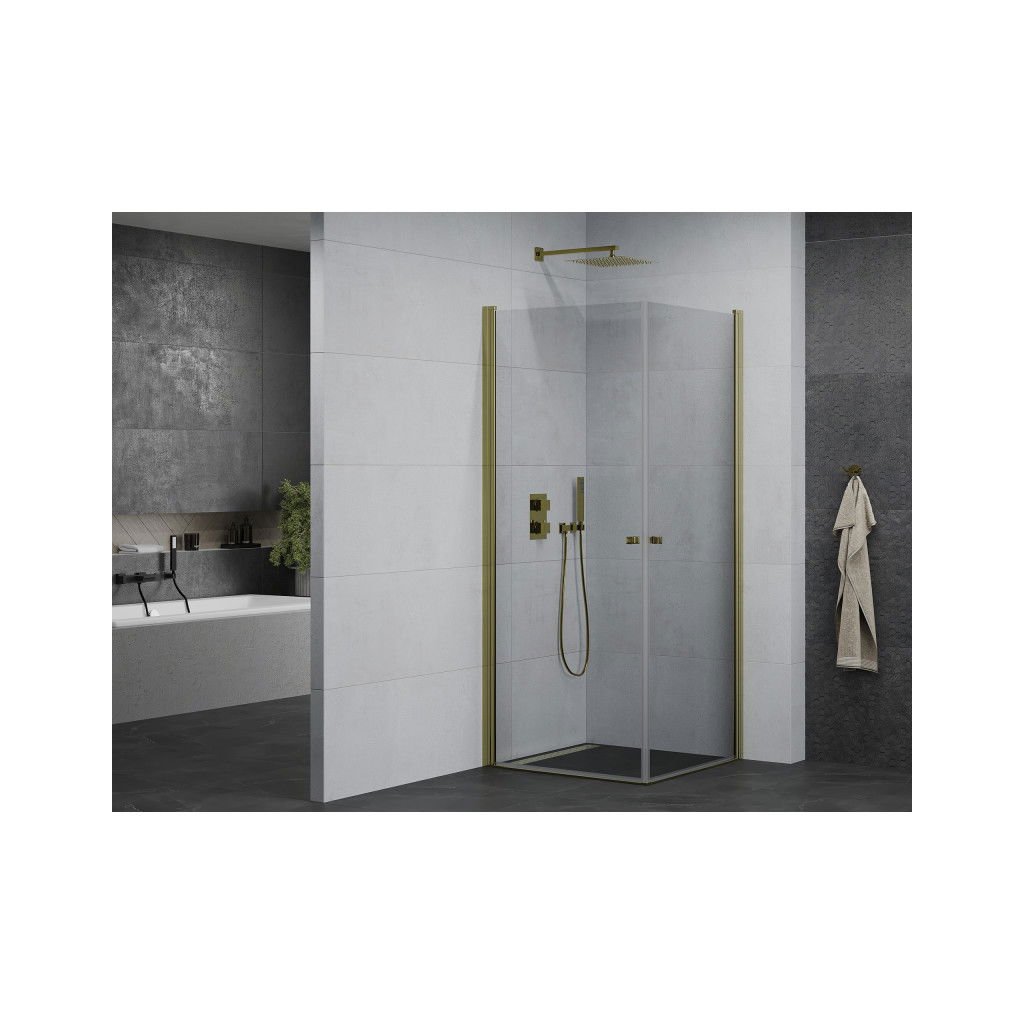 Mexen Pretoria Duo, sprchovací kút s 2-krídlovými dverami 80 (dvere) x 80 (dvere) cm, 6mm číre sklo, zlatý profil, 852-080-080-50-00-02