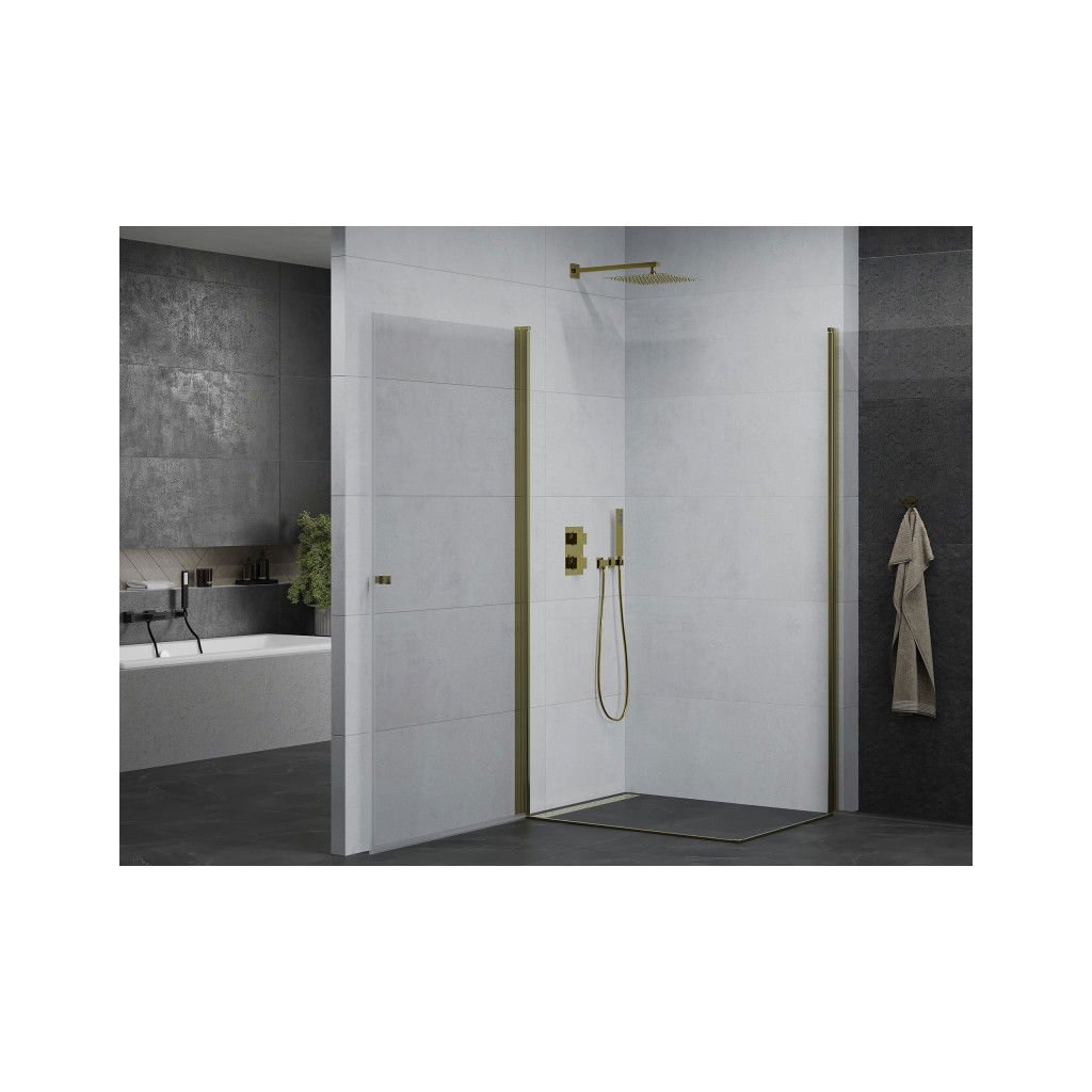 Mexen Pretoria Duo, sprchovací kút s 2-krídlovými dverami 90 (dvere) x 80 (dvere) cm, 6mm číre sklo, zlatý profil, 852-090-080-50-00-02