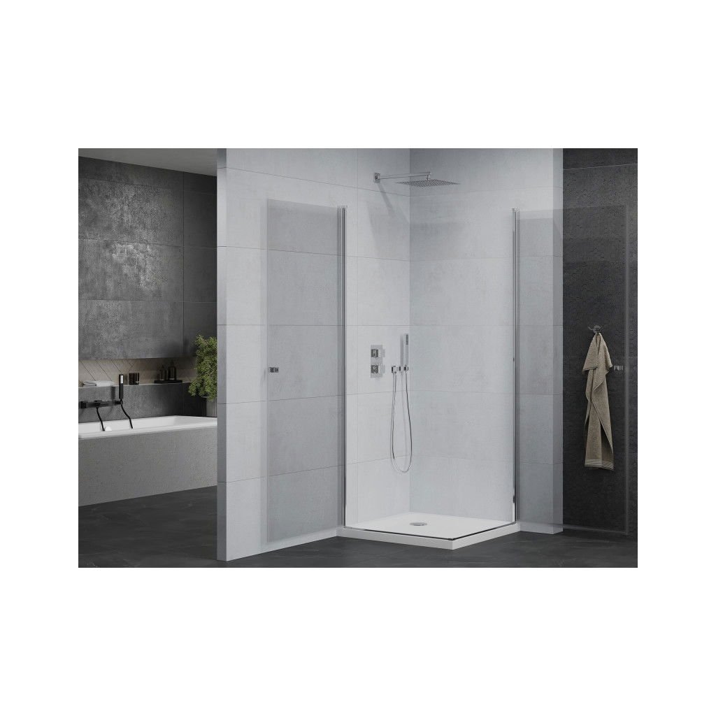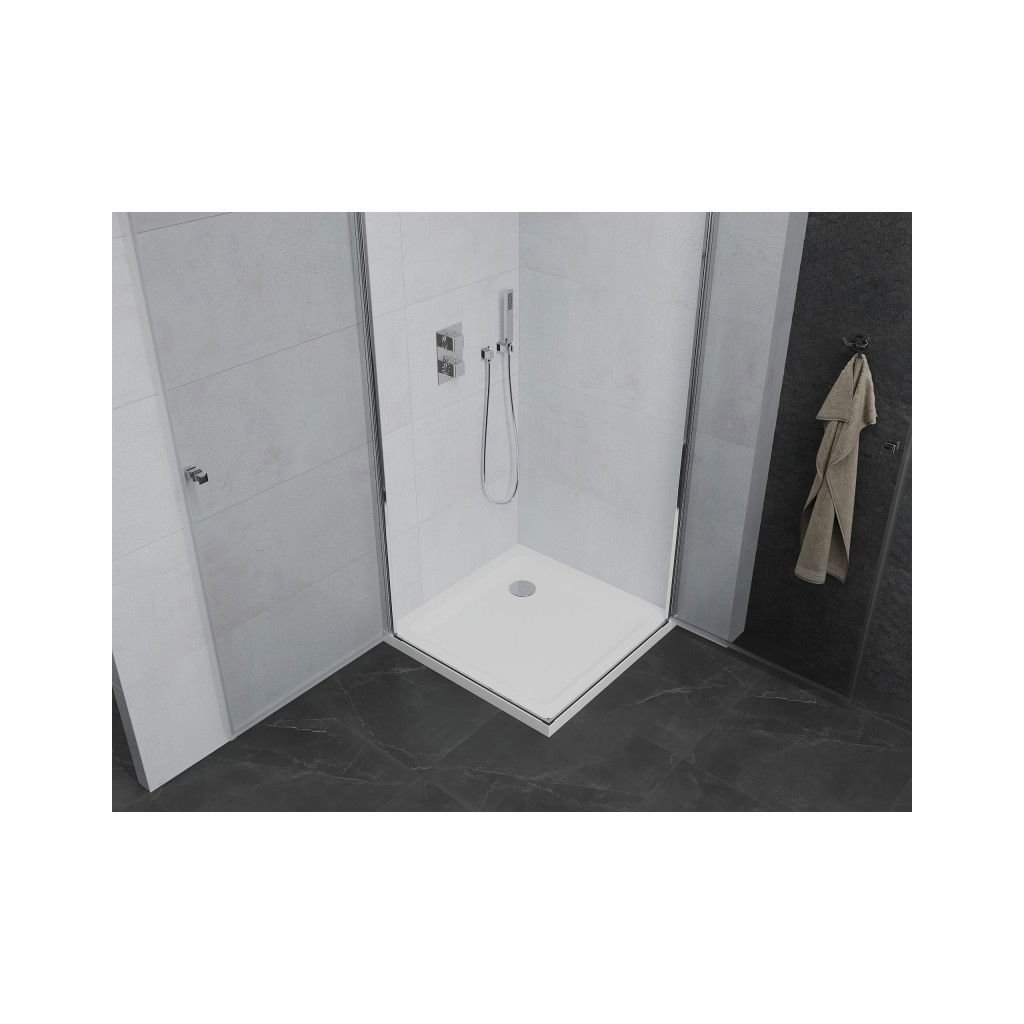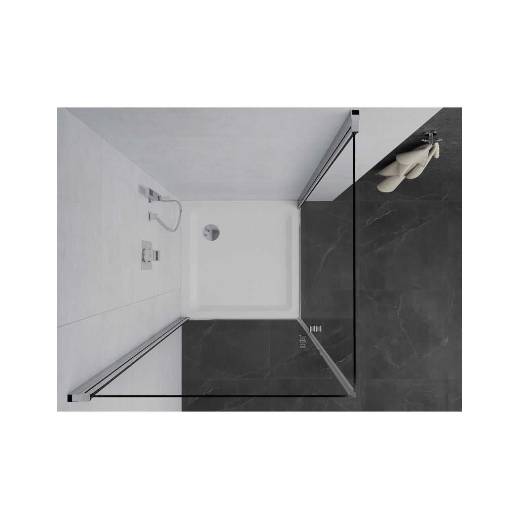 Mexen Pretoria Duo, sprchovací kút s 2-krídlovými dverami 90 (dvere) x 90 (dvere) cm, 6mm číre sklo, chrómový profil + slim sprchová vanička 5cm biela, 852-090-090-01-02-4010