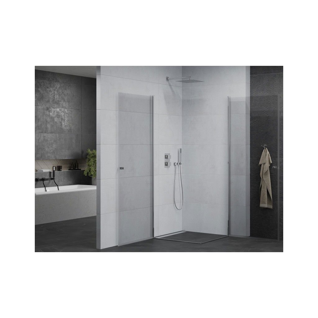 Predstavujeme Vám model série Pretoria DUO Door od výrobcu Mexen. Sprchový kút je vyrobený z veľmi odolného a mimoriadne bezpečného kaleného skla s hrúbkou 6 milimetrov. Profil je vyrobený z hliníka s chrómovou úpravou. Dvere sú vybavené kovovým madlom a sú 2-krídlové otváravé. Montáž je univerzálna, je možné osadenie na ľavú alebo pravú stranu. Sprchové dvere sa navzájom spájajú magnetickou lištou, pri montáži je možné rozhnodnúť sa pre otváranie dverí dnu alebo von. Sklo má povlak pre ľahké čistenie (easy-clean) a je dostupné v mnohých šírkach pre rôzne montážne otvory. Vyrovnávanie nerovností steny je tiež súčasťou funkcie kabíny (max. 1,5cm v hliníkovom profile na oboch krídlach). Model je možné namontovať na sprchovú vaničku aj priamo na dlažbu. Výška kabíny je 190 centimetrov. Sada obsahuje sadu tesnení na odvodnenie vody a hliníkový prah, ktorý utesňuje dvere. Tento sprchovací kút sa skladá z dvoch sprchových dverí Pretoria, ktoré sú navzájom prepojené magnetickou lištou po zatvorení sprchového kútu.