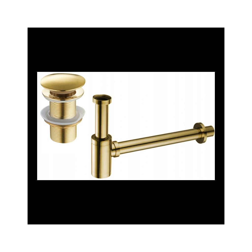 Mexen príslušenstvo, Okrúhly umývadlový sifón so zátkou click-clack, bez prepadu, zlatá, 7991050-50