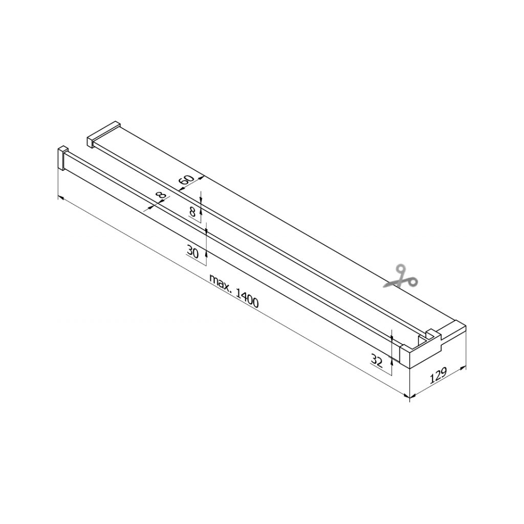 - Dĺžka: max. 1400 mm (možnosť skrátiť na požadovanú dĺžku)