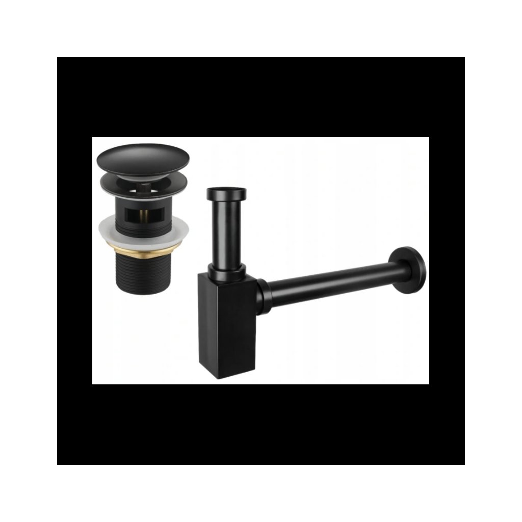 Mexen príslušenstvo, Štvorcový umývadlový sifón s keramickou zátkou click-clack, s prepadom, čierna, 7992060-75