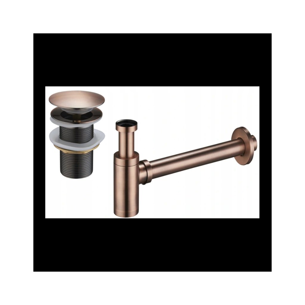 Mexen príslušenstvo, Umývadlový flaškový sifón okrúhly so zátkou click-clack, bez prepadu, starožitná meď, 7991050-45