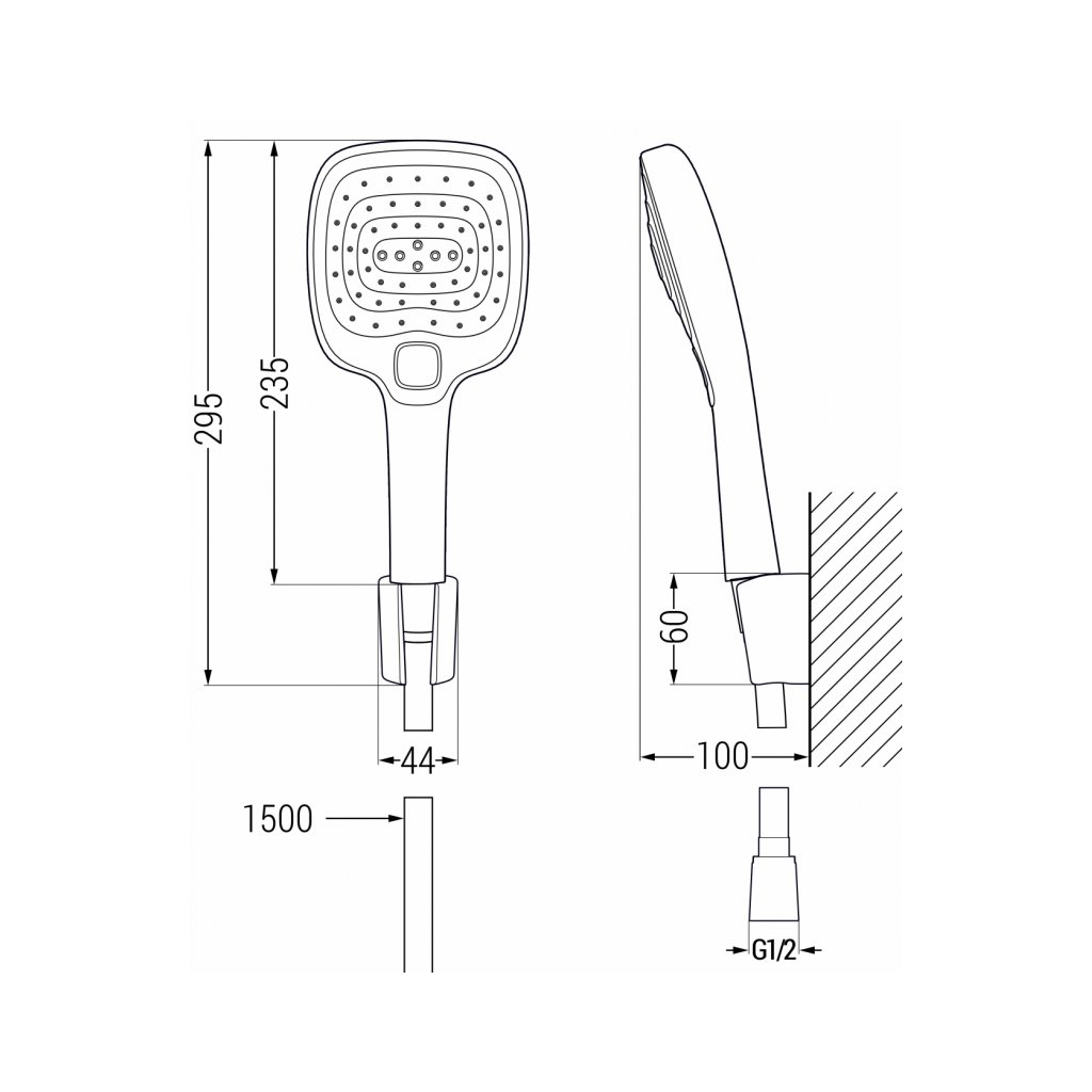 sada ručnej sprchy + hadice + 1-bodového uchytenia