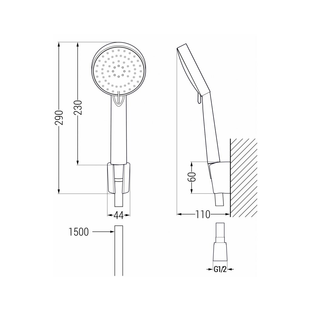 sada ručnej sprchy + hadice + 1-bodového uchytenia