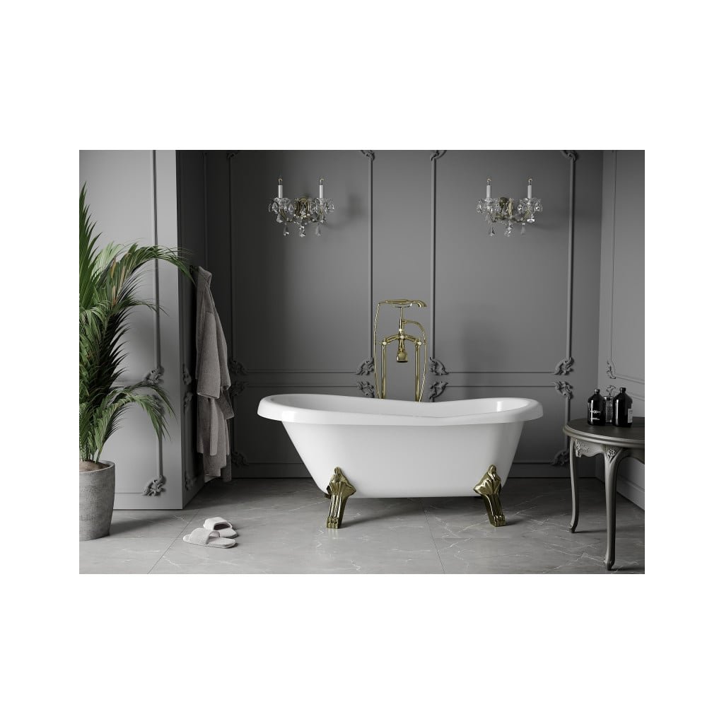 Mexen Retro, voľne stojaca vaňa 150 x 73 cm, biela, zlaté nohy, 53251507300-50