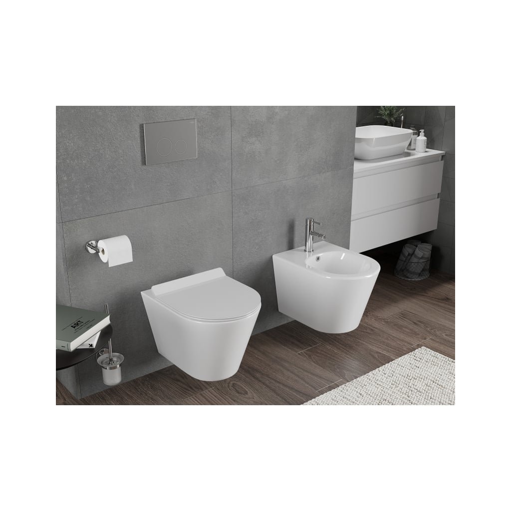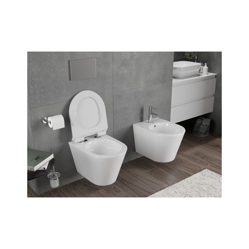 Mexen Rico, závesná WC misa 490x360x370 mm, Rimless Tornádo + WC sedadlo z duroplastu, biela lesklá, 30720100T