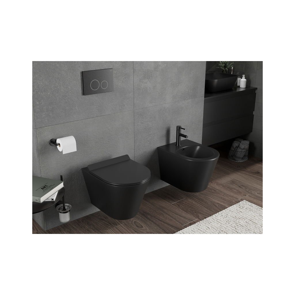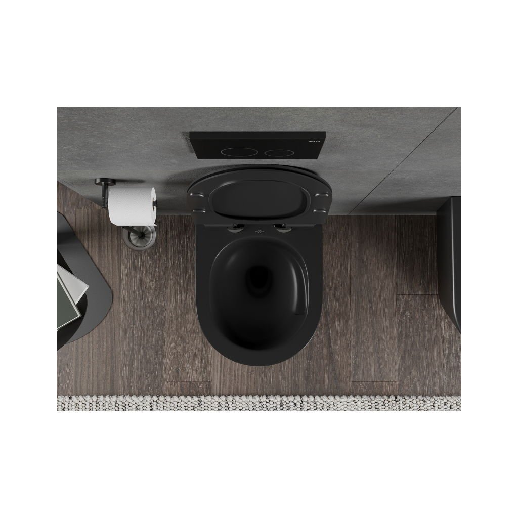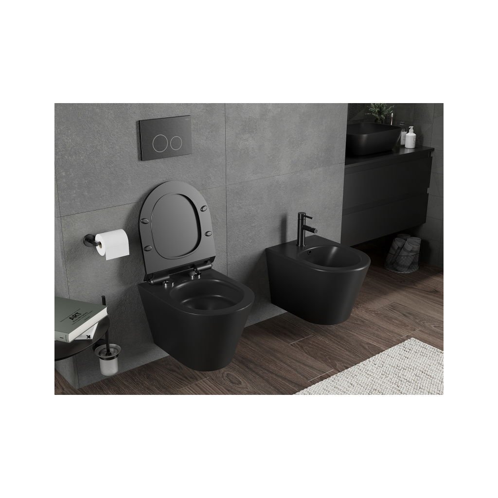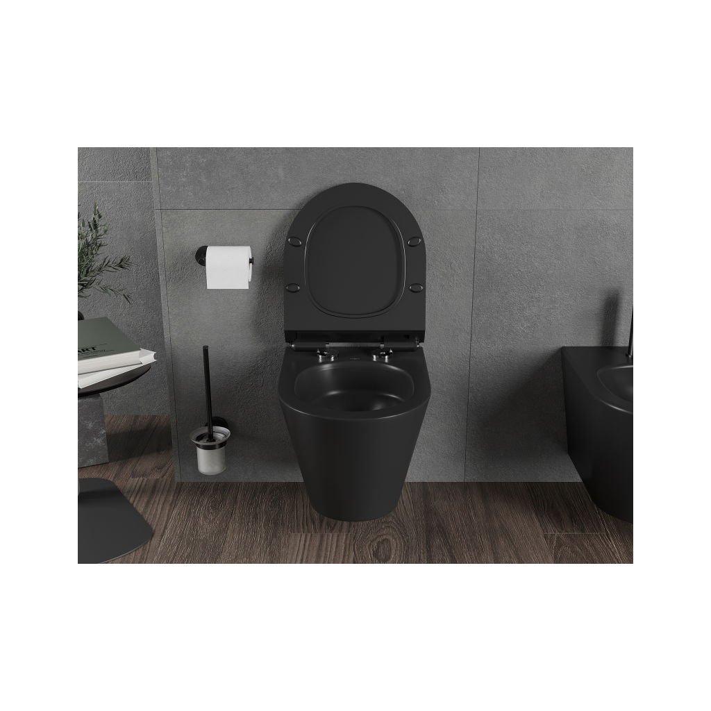 Mexen Rico, závesná WC misa 490x360x370 mm, Rimless Tornádo + WC sedadlo z duroplastu, čierna matná, 30720185T