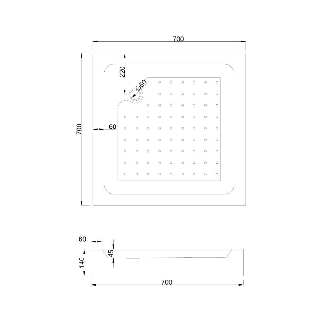 MEXEN RIO - Sprchová vanička KVADRAT 70x70x14 cm + sifon, biela, 45107070