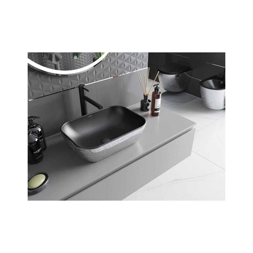 Mexen Rita, umývadlo na dosku 45x32x14 cm, čierna matná-strieborný vzor, 21084572