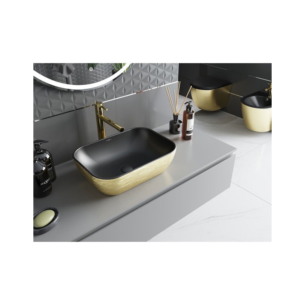 Mexen Rita, umývadlo na dosku 45x32x14 cm, čierna matná-zlatý vzor, 21084577