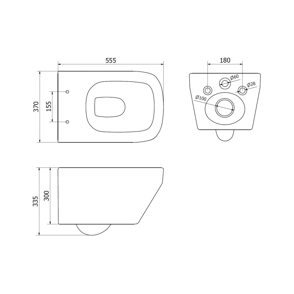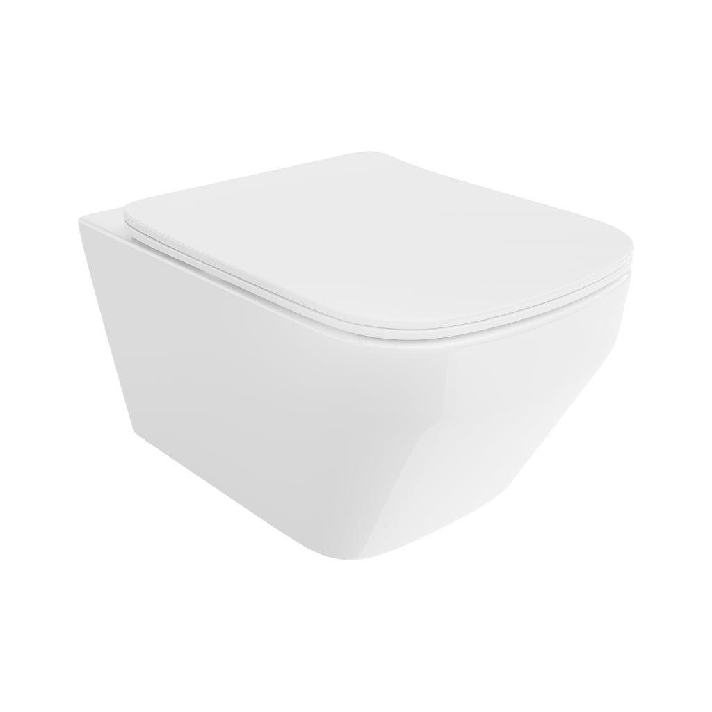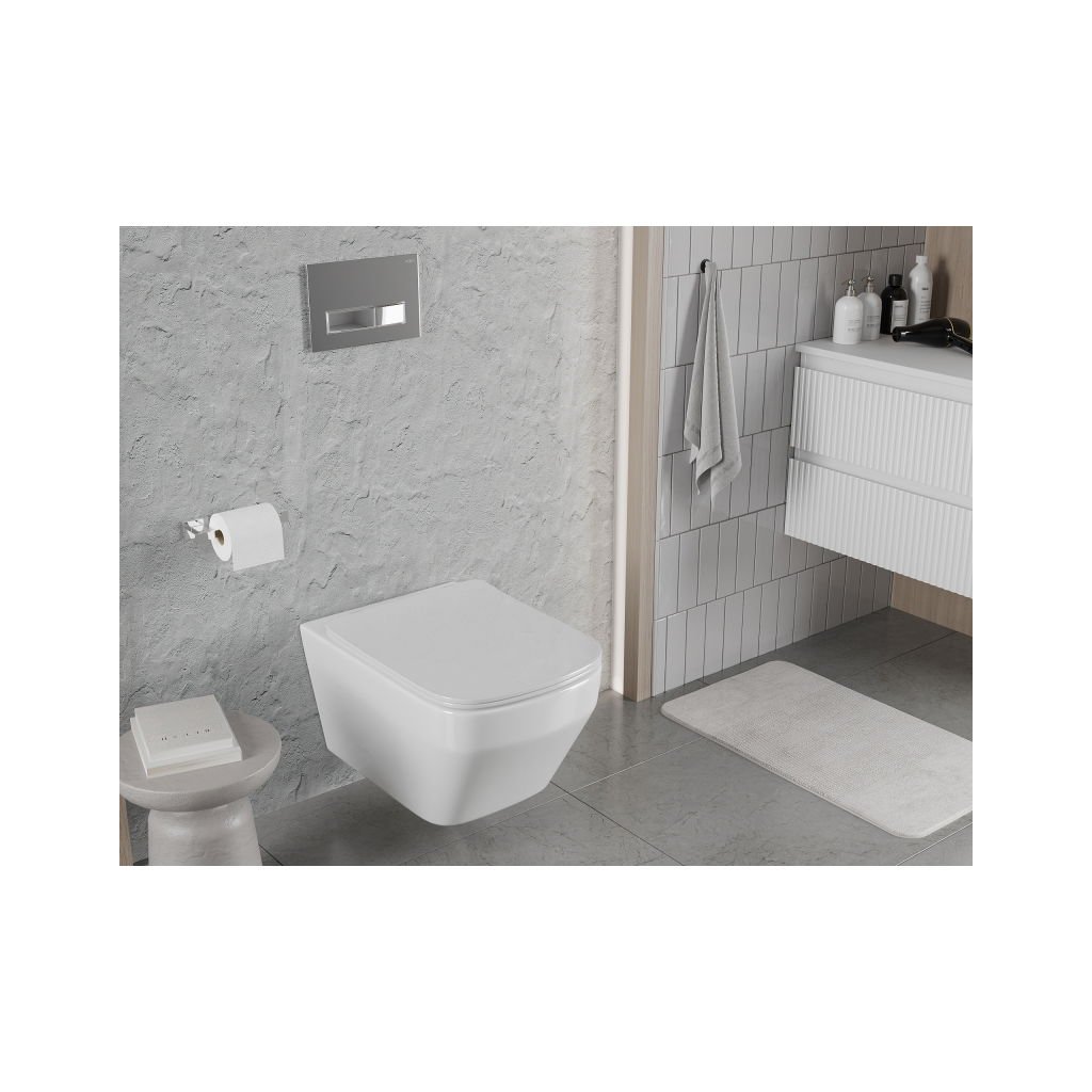 Mexen Riva, závesná WC misa 555x370x335 mm, Rimless Tornádo + WC sedadlo z duroplastu, biela lesklá, 30630200T