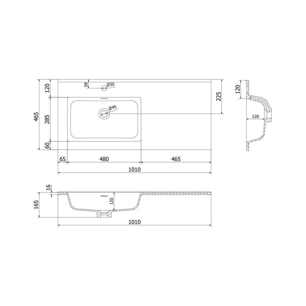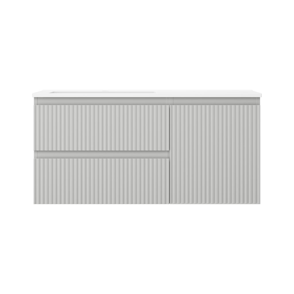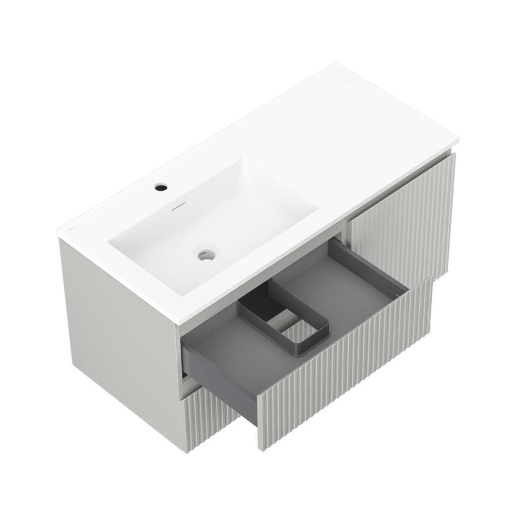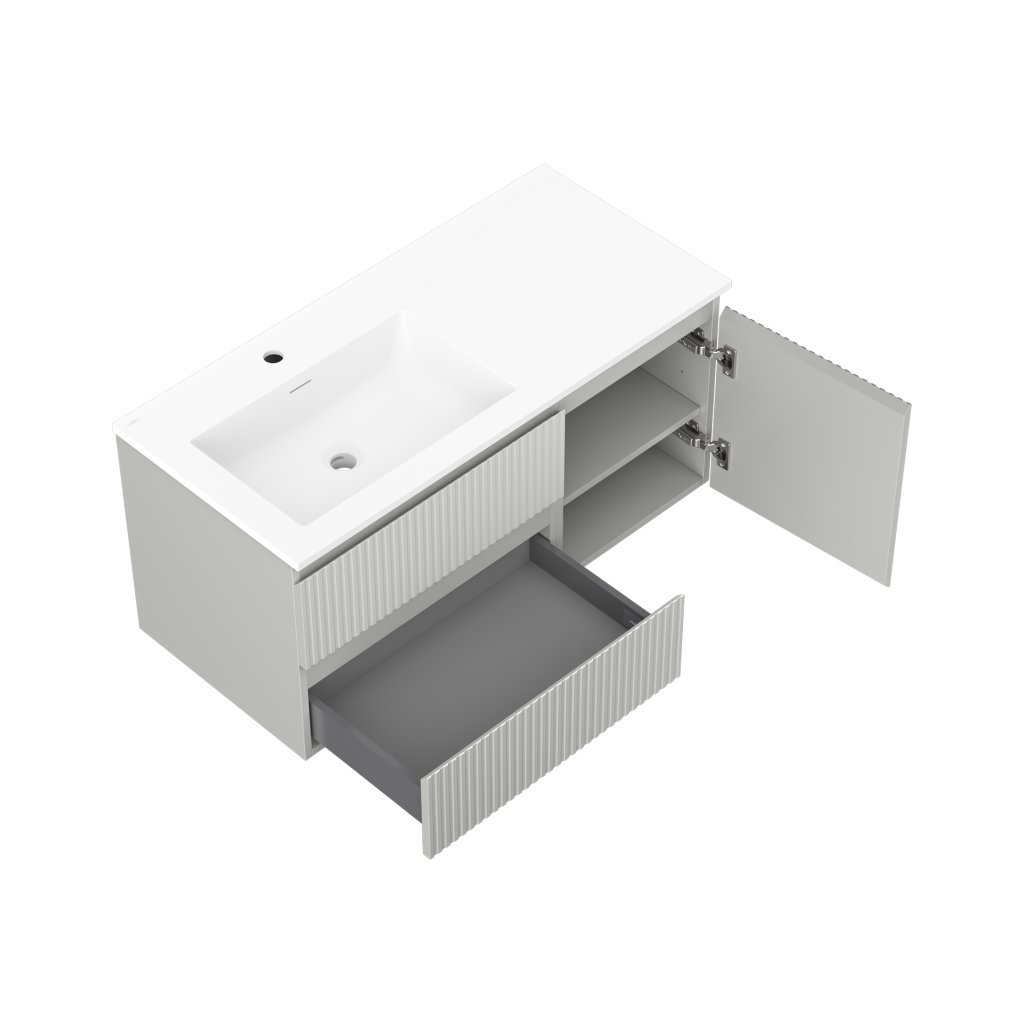 Mexen Rivel, kúpeľňová skrinka 100 cm s ľavým umývadlom Otis, 2S, 1D, drážkovaná, sivá matná/biela matná - 91A23-10047-3-BBFFF62-W18L01