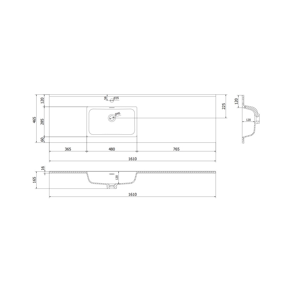 Mexen Rivel, kúpeľňová skrinka 160 cm s ľavým umývadlom Otis, 2S, 1D, drážkovaná, sivá matná/biela matná - 91A23-16047-3-BBFFF62-W18L01