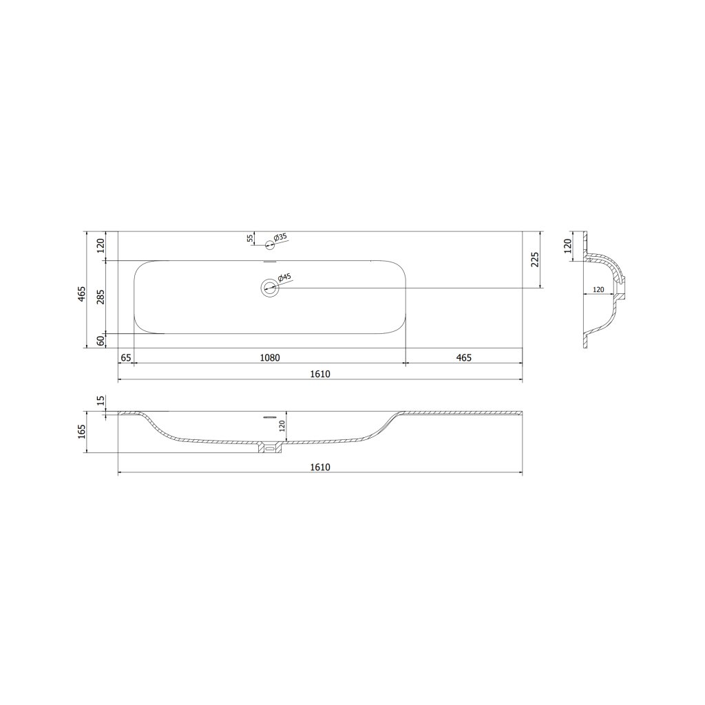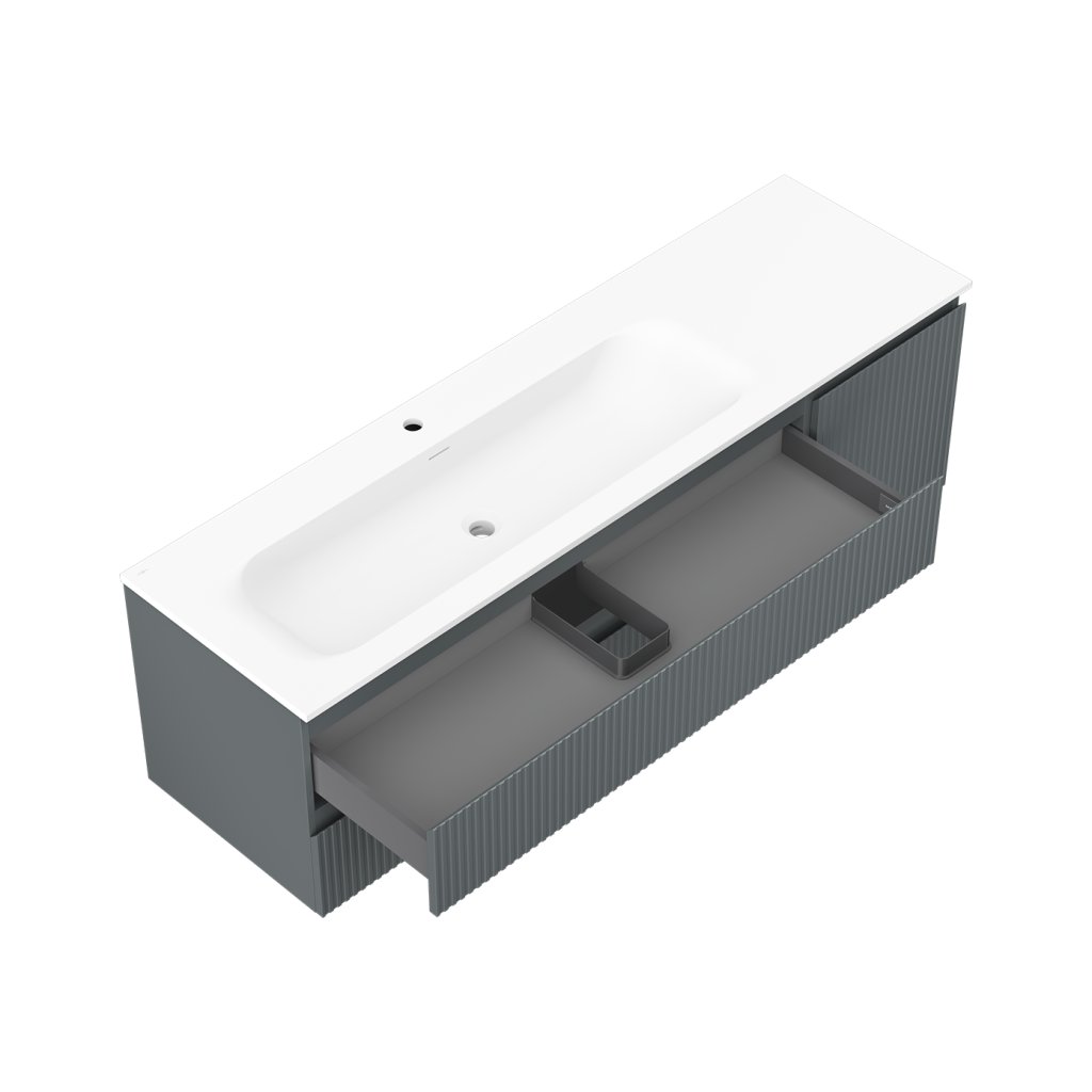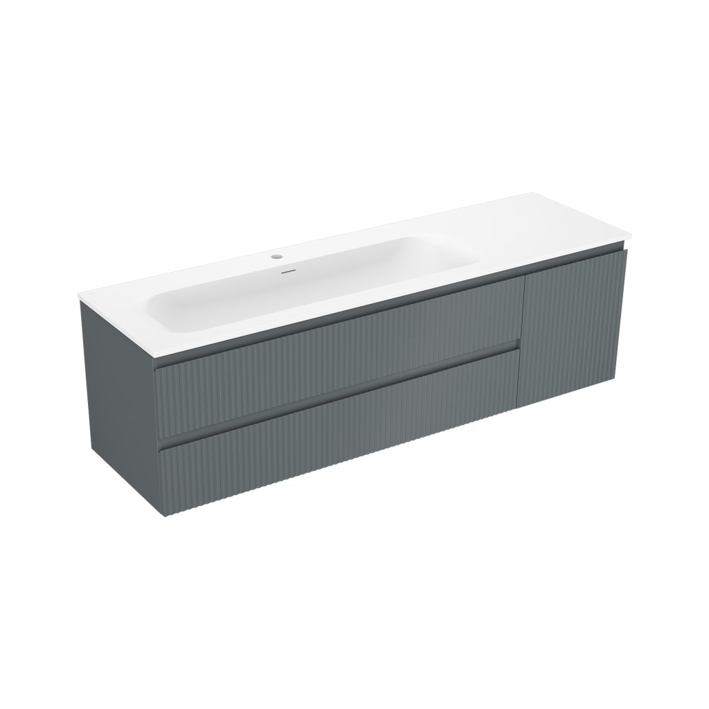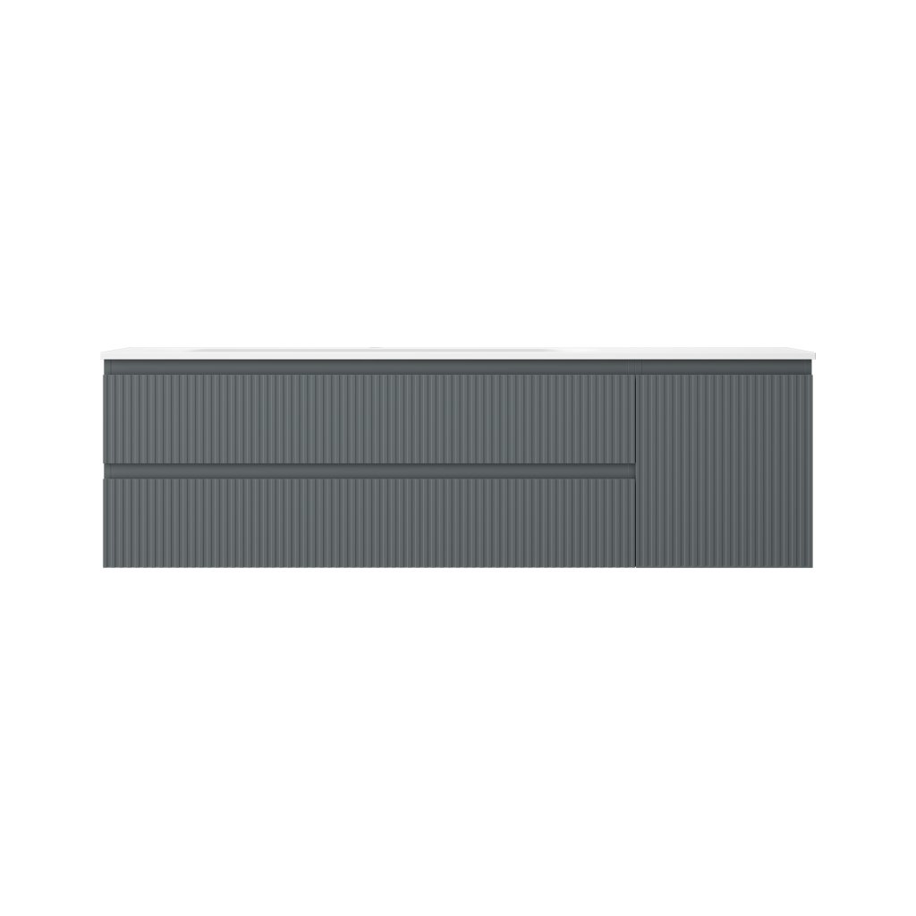 Mexen Rivel, kúpeľňová skrinka 160 cm s ľavým umývadlom Vela, 2S, 1D, drážkovaná, grafitová/biela matná, 91A23-16047-3-BBFFF66-W23L01