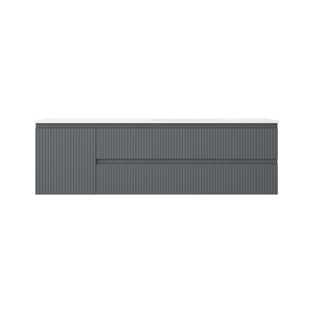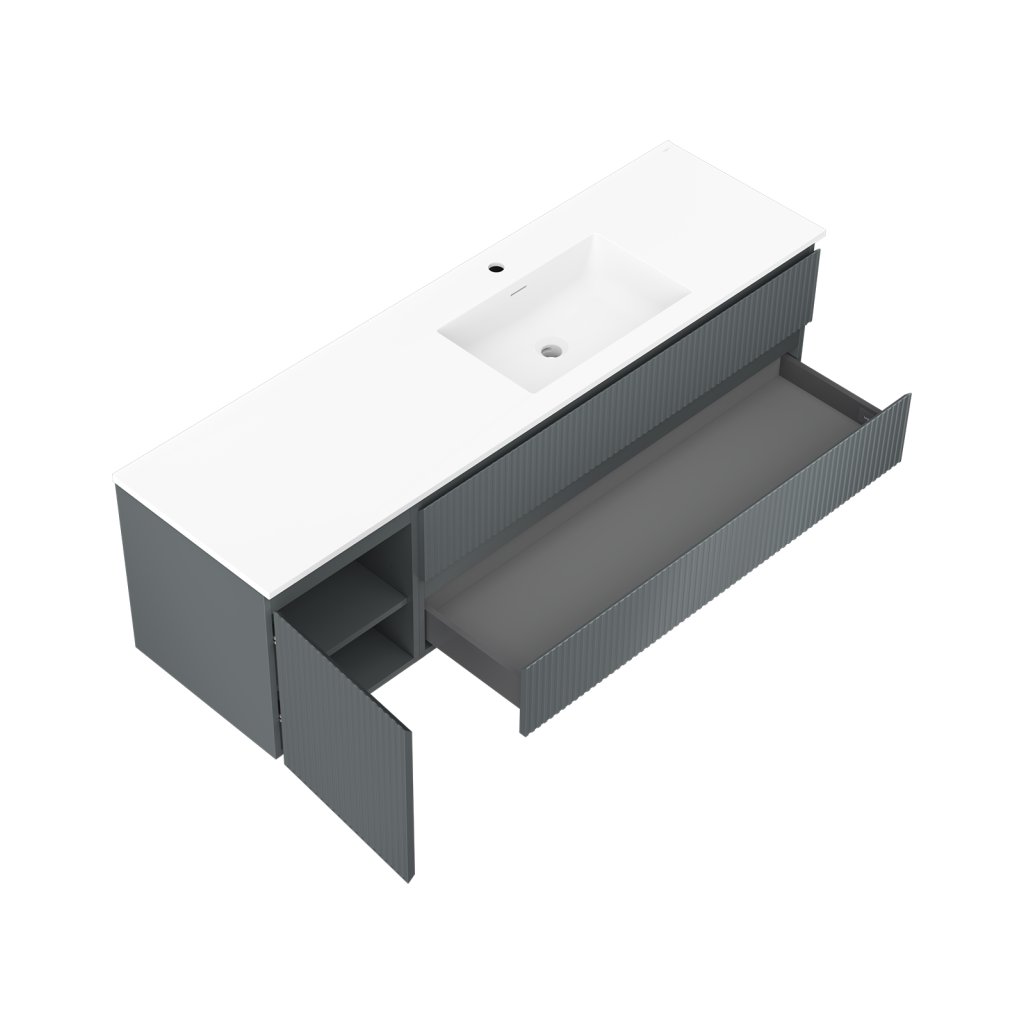 Mexen Rivel, kúpeľňová skrinka 160 cm s pravým umývadlom Otis, 2S, 1D, drážkovaná, grafitová/biela matná, 91A23-16047-3-BBFFF66-W18P01