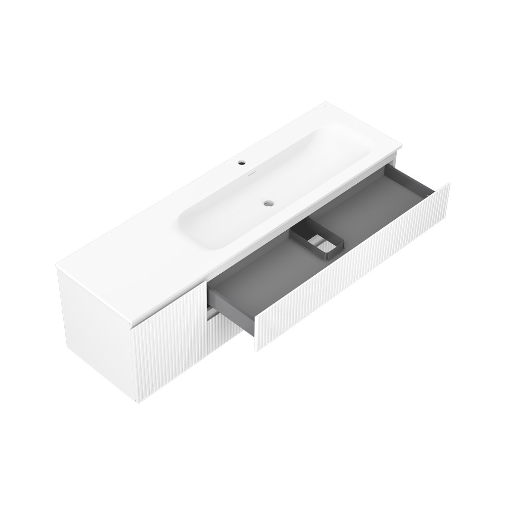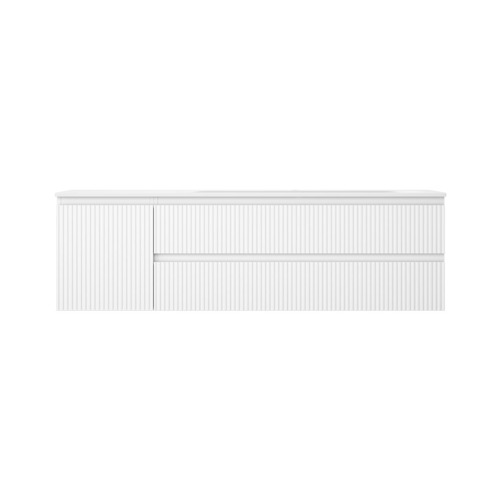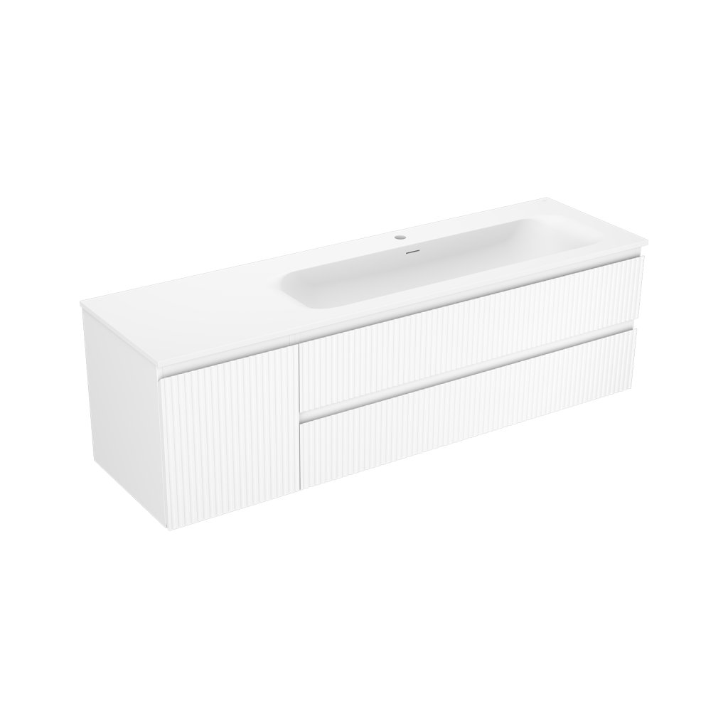 Mexen Rivel, kúpeľňová skrinka 160 cm s pravým umývadlom Vela, 2S, 1D, drážkovaná, biela matná, 91A23-16047-3-BBFFF01-W23P01