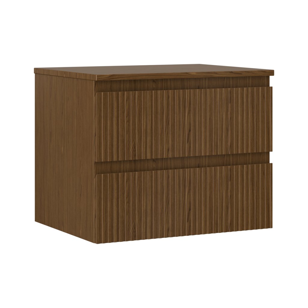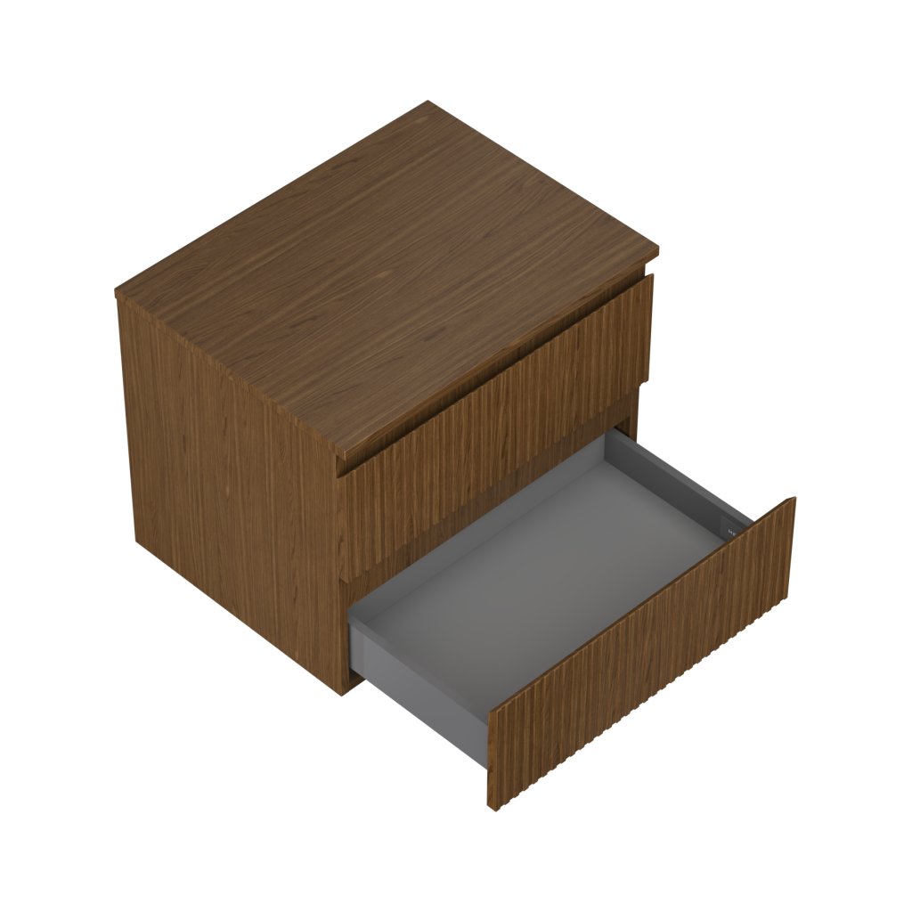 Mexen Rivel, kúpeľňová skrinka 60 cm s hornou časťou, 2 zásuvky, drážkovaná, orech, 91A20-06047-2-BFFC86