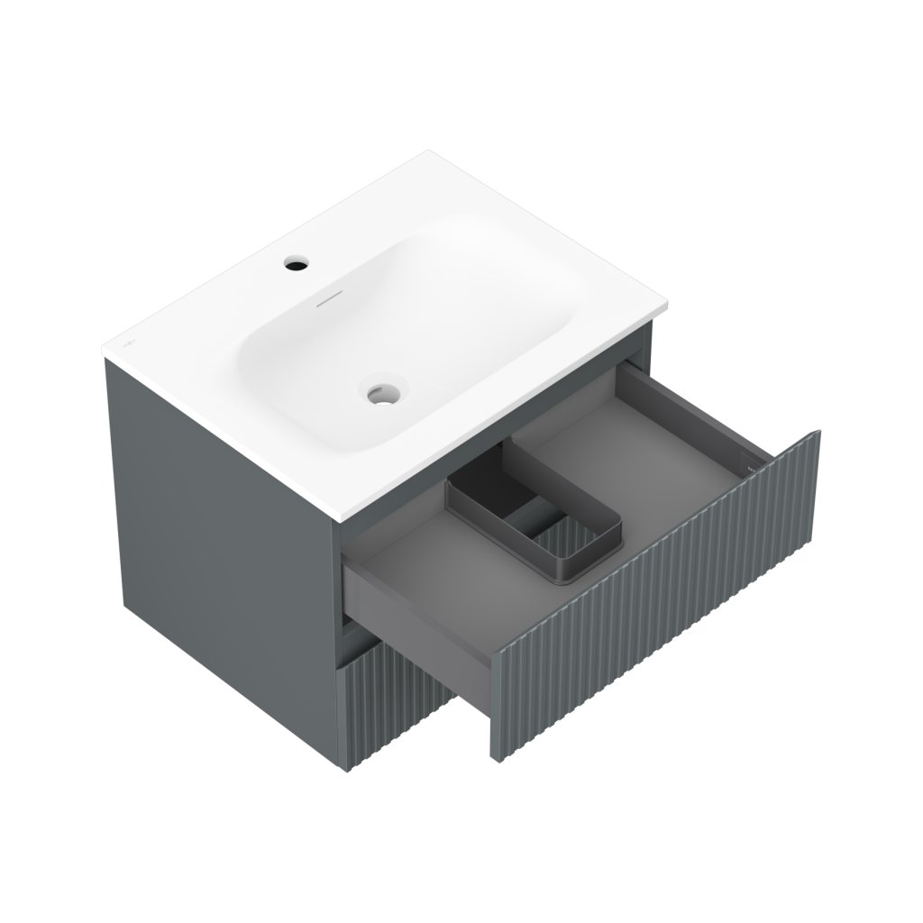 Mexen Rivel, kúpeľňová skrinka 60 cm s umývadlom Vela, 2 zásuvky, drážkovaná, grafitová matná/biela matná, 91A20-06047-2-BFF66-W23M0
