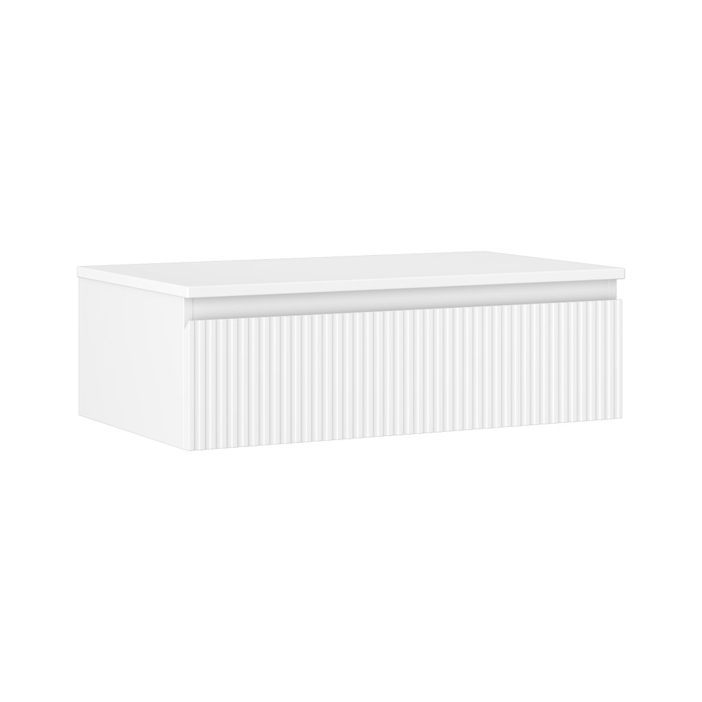 Mexen Rivel, kúpeľňová skrinka 80 cm s pracovnou doskou, 1 zásuvka, drážkovaná, biela matná, 91A20-08023-1-BFC01